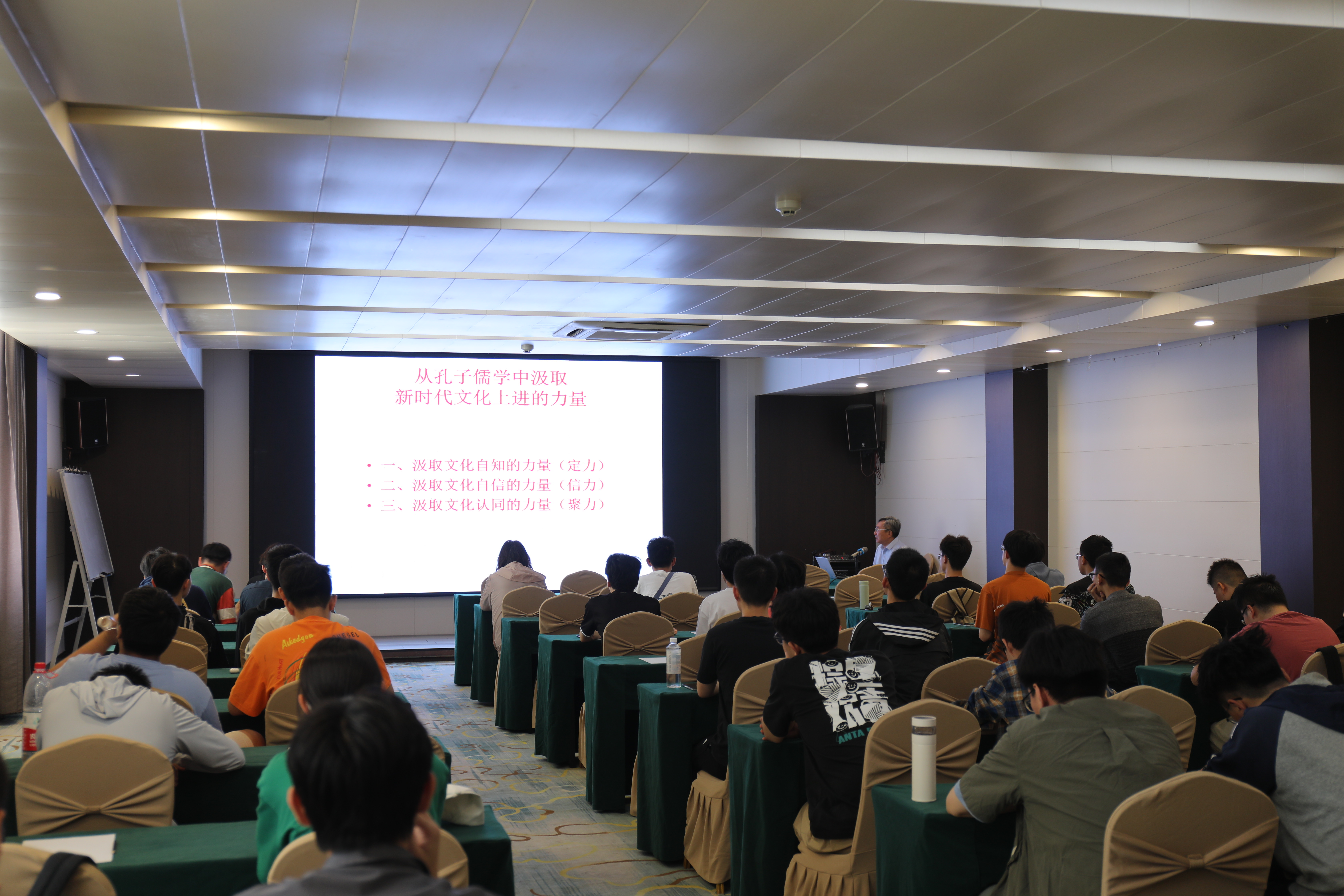 活动特别邀请孔子研究院研究员齐金江为同学们带来主题为从孔子儒学中汲取新时代文化上进的力量专题讲座。齐金江从中华文化的定力、信力、聚力三个方面,向同学们阐释了新时代青年要汲取以儒家文化为代表的的中华优秀传统文化的自知、自信和认同的力量,鼓励新时代青年深刻领会孔子儒家思想对新时代中国的影响与重大意义,“从延续民族文化血脉中开拓前进,推进各种文明交流互学互鉴”。
