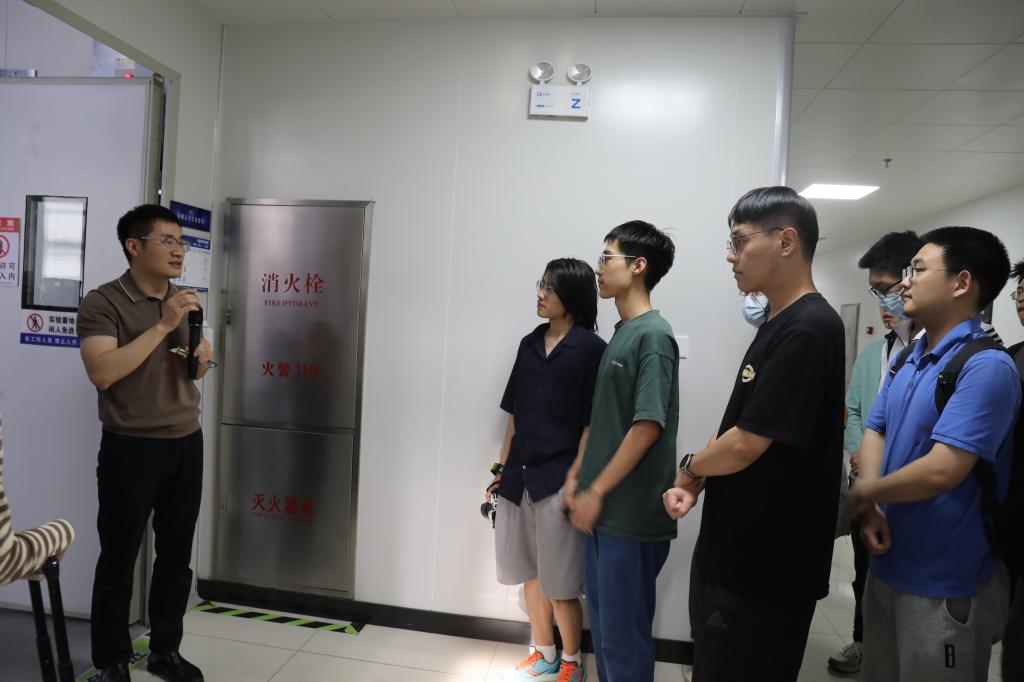 王焕杨向强基班同学介绍了研究院的基本情况,着重介绍了研究院在“卡脖子”领域对解决国家重大战略急需做出的贡献。徐明升从第三代半导体的重要性及其战略意义出发,向同学们介绍了我校尤其是大平台在新一代半导体领域的科研成果。其他教师代表分别向同学们介绍了自己的科研经历和研究方向。通过听取介绍、交流体会,同学们深入了解了研究院的攻关方向和科研平台,对新一代半导体材料的制备、加工和应用有了新的认识。在王焕杨的带领下,强基班同学参观了大平台实验室,认识了各类先进仪器,了解了各个实验室的主要功能和正在攻克的重点项目。