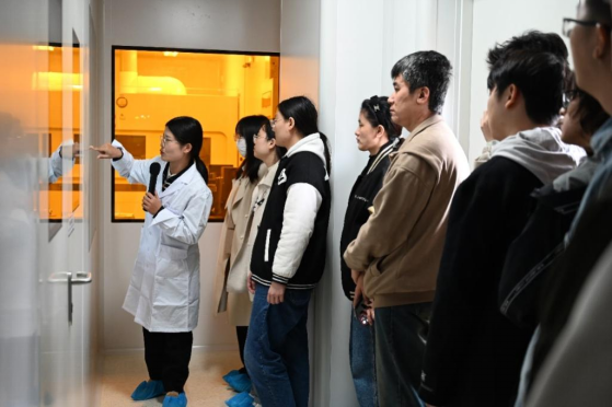 在集成电路学院的组织下,同学们参观了集成电路学院科研成果展厅与“东山”服务器集群,讲解老师向同学们介绍了学院近年来各类产学研相结合的科研创新成果。随后,同学们又来到了集成电路学院氧化物半导体科研实验平台(N4SP1),进入超净间近距离参观了半导体器件制备的实验设备。在老师的带领下,了解了各个实验设备的原理及用途,感受到了其强大的科研实力。