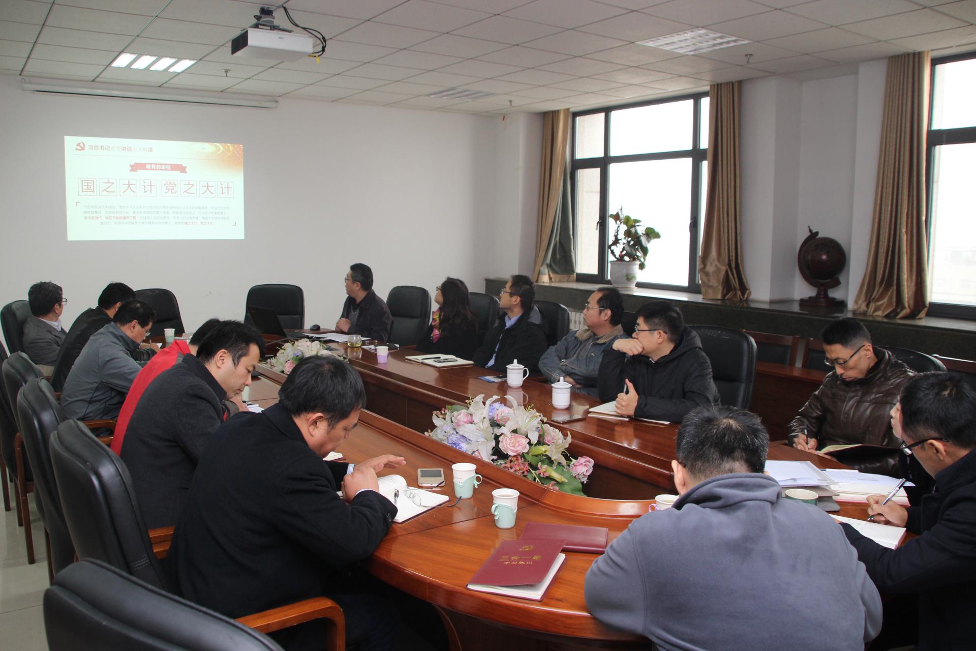 副院长赵明文对学院研究生招生和培养情况做了系统的介绍,分析了目前所面临的生源、推免生比例较低等问题,并提出了有针对性对策。副院长赵明磊对照本次学习习近平总书记讲话,从资源角度出发,结合学院实验教学、实验课等具体情况,提出了可操作性建议。党委委员刘建强传达了教育部高教司司长吴岩所做的“建设中国金课”专题报告,参会人员围绕报告内容、结合学院课程进行了讨论。