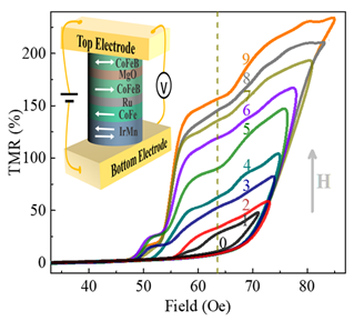 为了满足人们日益增长的低功耗、高密度信息存储的需求,科学家们提出了研制非易失多态存储器,以替代目前只能存储“0”和“1”的二态存储器。当前计算机的存储和运算都使用二进制,这得益于实验上比较容易获得两个稳定的磁化状态或电压态,分别用于表示“0”和“1”。然而,要进一步提高存储密度和降低功耗,二态存储器件面临着巨大的挑战。如果能在一个器件上制备出十个状态,直接用于“0”到“9”的数据存储,进而研制出基于十进制的新型计算机,不仅能极大的提高信息存储密度、降低功耗,甚至还能促进神经网络、人工智能的快速发展。