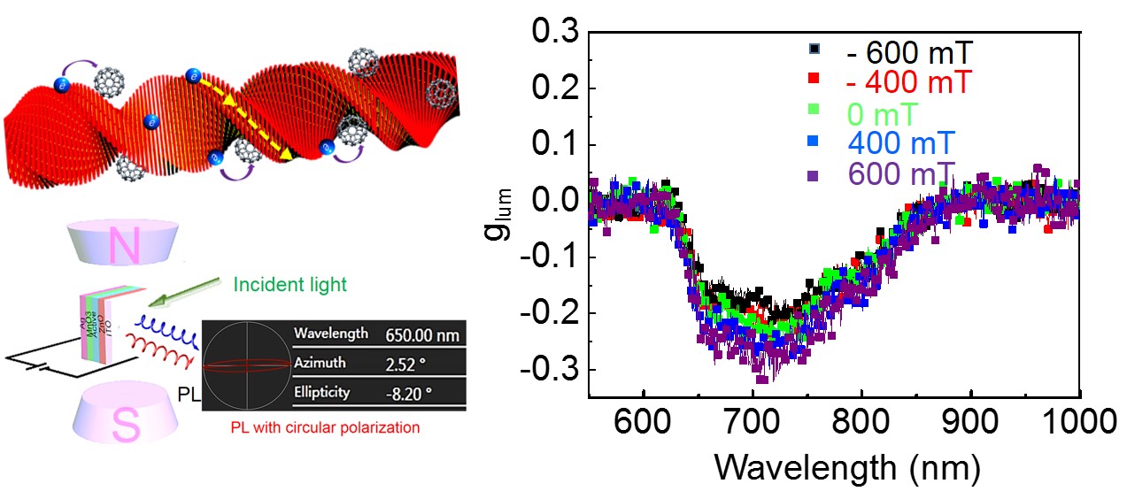 在考虑手性引起的轨道角动量的情况下,手性P3HT纳米线的自旋弛豫时间与电荷复合时间相当,因而观察到圆极化发射。为了证实轨道角动量和圆偏振光发射直接的关系,利用外磁场和电场对能级分裂进行调谐,进一步调节了圆偏振光发射。有机手性晶体、有机共晶除了具有丰富的光学性质之外,自旋自发极化、磁致荧光、光-磁耦合效应等一系列新的现象填补了有机晶体在自旋研究领域的空白。近两年来,依托于晶体材料国家重点实验室,郝晓涛团队秦伟等人开展了有机手性晶体以及共晶内光-磁效应的研究等方面取得了系列重要成果,相关工作发表在Adv. Mater.、ACS Nano、Adv. Opt. Mater.、APL等期刊上。研究工作得到了国家自然科学基金委员会、晶体材料国家重点实验室、山东省泰山学者专项经费、齐鲁青年学者基金和山东大学基本科研业务费的支持。
