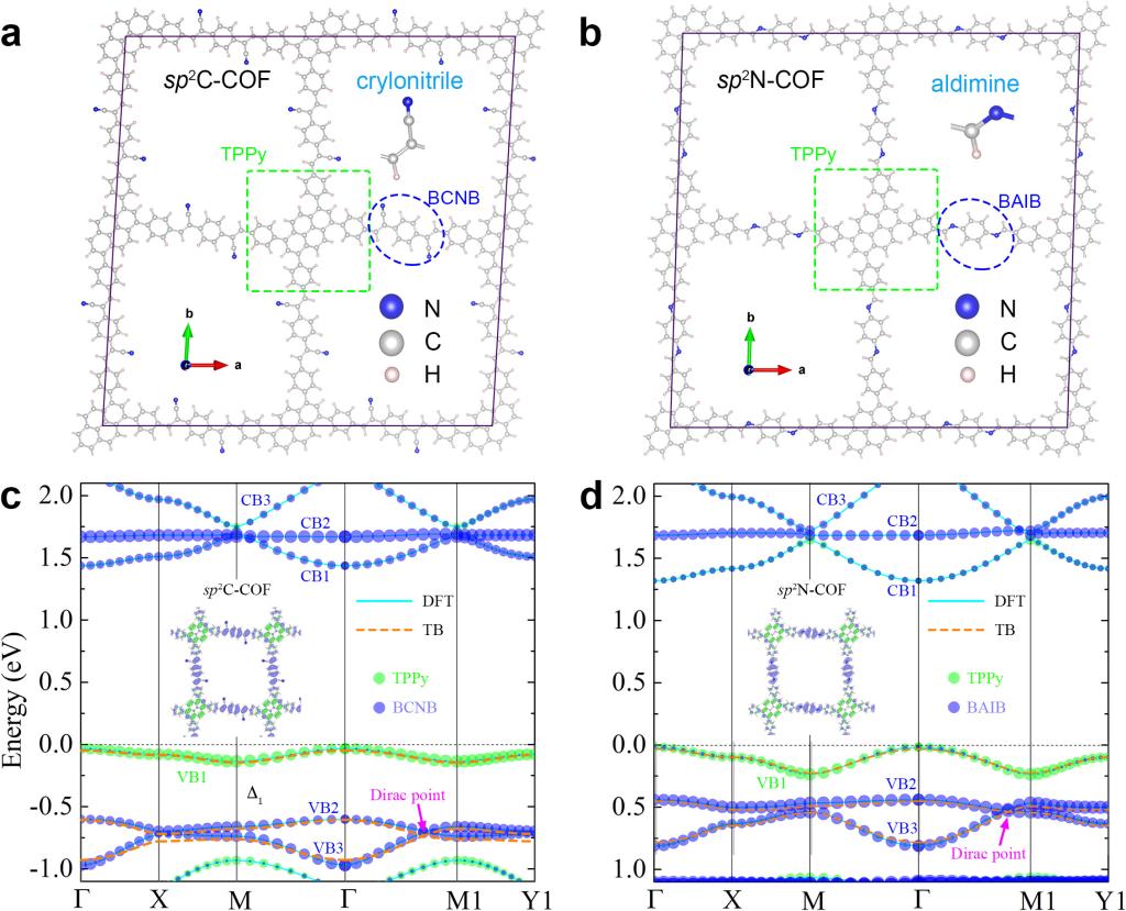 近日,我院凝聚态理论课题组崔彬、刘德胜、解士杰等三位老师带领研究生郑兴稳与北京计算科学研究中心的黄兵研究员和王建峰博士合作,从简单模型出发,通过紧束缚模型分析探讨了Lieb晶格的电子结构和拓扑特性与晶格畸变的关系;然后基于第一性原理计算和结构搜索,证实了在两种已经合成的二维共价有机网络(sp2C-COF 和 sp2N-COF)中可以实现畸变的Lieb晶格和能带,并解释了实验上观测到的,碘掺杂氧化实验(空穴掺杂)从而导致铁磁性相变的现象。通过进一步的测试计算,研究团队还预测这种晶格随着空穴浓度的升高还可以发生顺磁-铁磁-反铁磁态的相变。此项研究成果不仅证实了这种COF材料是畸变Lieb晶格的材料实现,同时还找到了一条调控有机材料拓扑性和磁性的新路径。相关研究结果以“Realization of Lieb Lattice in Covalent-organic Frameworks with Tunable Topology and Magnetism”为题发表在《自然通讯》上【Nature Communications, 11(1), 66, (2020)】。文章第一作者和第一通讯作者为崔彬, 山东大学为第一完成单位。该研究工作得到了国家自然科学基金,山东省自然科学基金和中国工程物理研究院挑战计划的资助。