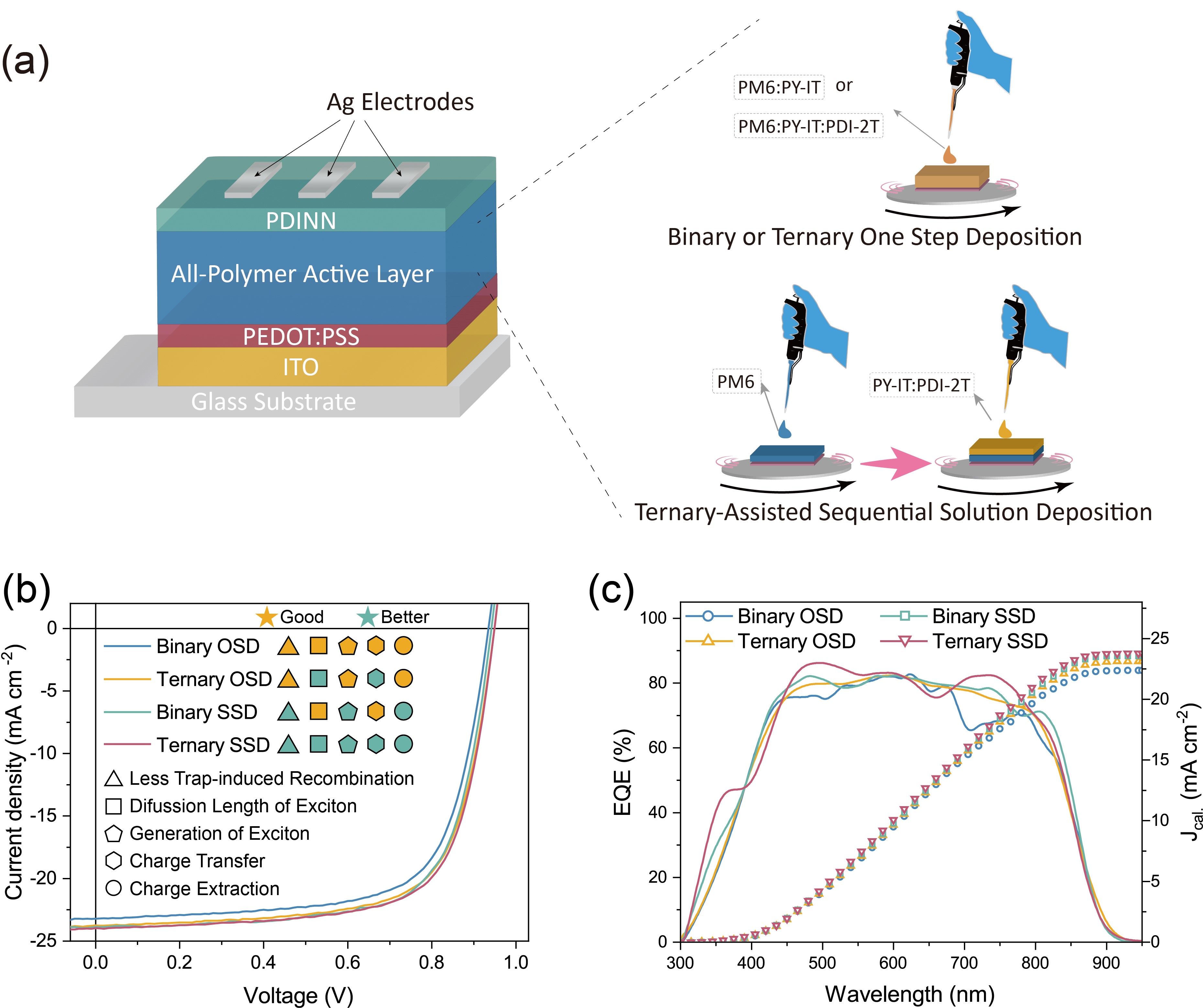 一、 全聚合物太阳能电池因其在功率转换效率和长期运行稳定性方面的良好性能,是新一代光伏技术的候选产品。体相异质结活性层薄膜中的纳米形貌对有机光伏器件的光生激子(扩散和解离)和载流子(转移和传输)行为具有重要意义。然而,由于非理想的分子构象和成膜热动力学行为,获得聚合物/聚合物共混物的“理想”垂直相分布仍然是一个挑战。