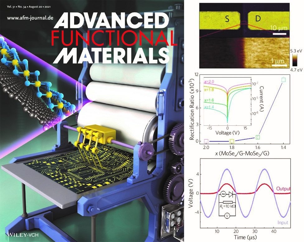 近日,我院陈峰教授团队在离子束材料改性与制备领域的研究中取得新进展,实现了离子束直接写入的二维集成二极管等元器件,相关工作以“Direct-Writing of 2D Diodes by Focused Ion Beams”为题发表在权威期刊Advanced Functional Materials(影响因子为16.836)上,并被选为期刊内封面(Inside Front Cover)。论文的第一作者为开云online(中国)2019级博士研究生刘燕然,通讯作者为谭杨、陈峰教授,山东大学为第一作者单位和唯一通讯作者单位。