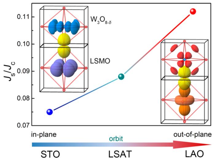 进展一:胡季帆教授团队在外延生长的W3O8−δ/(La,Sr)MnO3高质量氧化物异质结中,通过离子液体电场实现了W3O8−δ绝缘体-金属相变的可逆调控,进而在金属态W3O8−δ/LSMO异质结中观察到了电荷-自旋流的高效转换和自旋轨道矩驱动的磁化翻转。实验和理论研究共同发现在异质结中引入应变可以显著地改变自旋轨道矩效率,其中面内压应变可以导致Mn和W的面外d轨道的择优占据,提高异质结中d电子能带交叠,有效增强了W3O8−δ的自旋霍尔效应和W3O8−δ/LSMO界面的Rashba-Edelstein效应。该工作实现了电场对自旋轨道矩的可逆操控,并建立了轨道占据状态与自旋轨道矩强度之间的关系,为获得高效自旋电子学材料与器件提供了新的思路。相关工作以“Manipulation of spin-orbit torque in tungsten oxide/manganite heterostructure by ionic liquid gating and orbit engineering”为题发表于ACS nano期刊(2023, 17, 23626−23636),刘伟康博士和刘亮博士为文章共同一作,崔彬和胡季帆教授为文章共同通讯。郑州大学程少博教授、开云online(中国)秦宏伟教授、成彬博士为文章合作者。