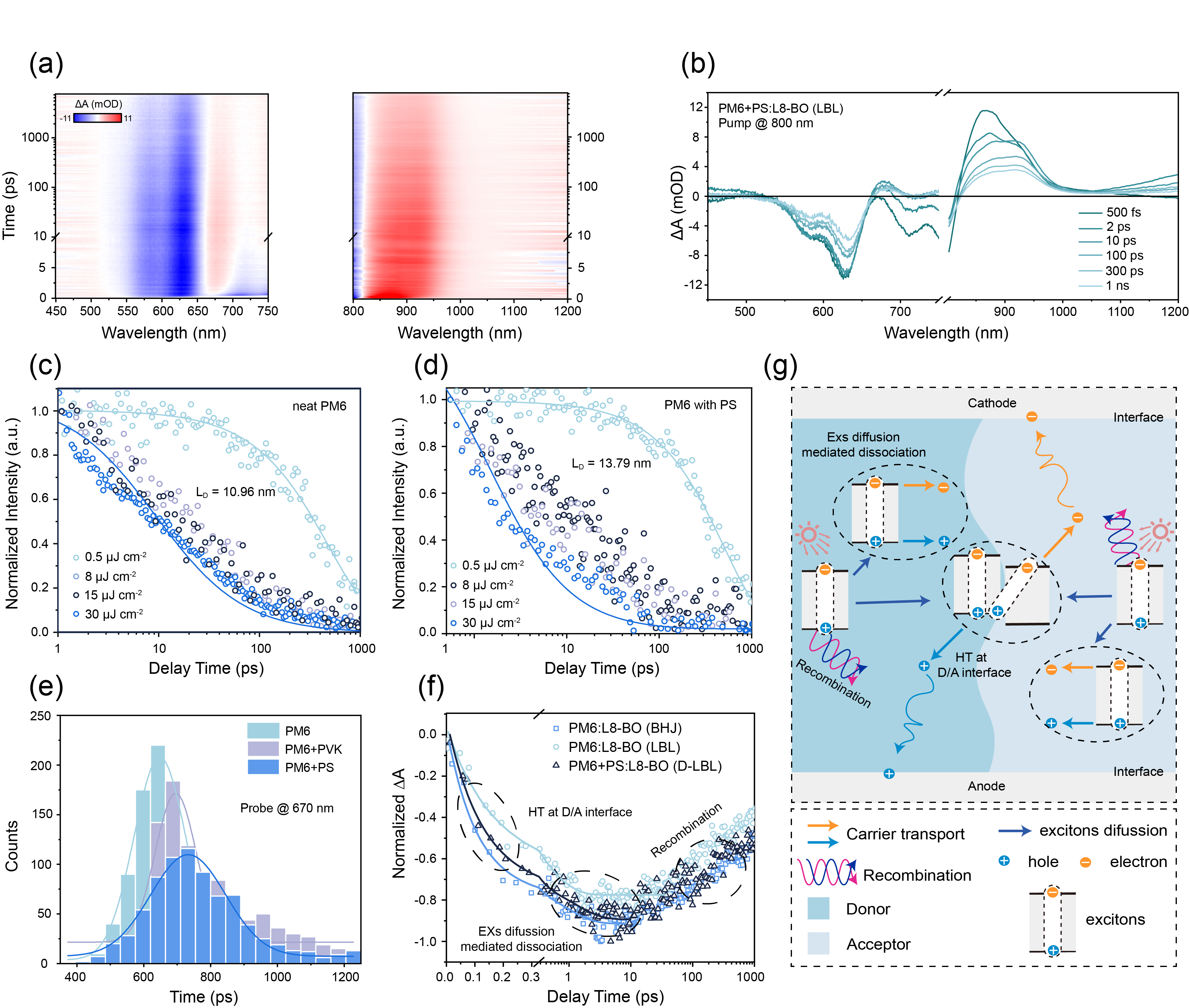 为推动国家“双碳”战略目标,我国将加大可再生能源布局,构建清洁低碳、安全高效的能源体系,引领全球新能源技术。在新型能源体系中,太阳能利用(光伏)将成为发电的主力军之一,其中有机光伏材料与器件的研究在材料设计合成和器件工程等方面取得了快速进展。但是其产业化应用受到了效率偏低、稳定性较差等问题的制约,特别是对内在光物理与载流子输运机制缺乏理解是限制器件性能提高的关键科学问题。针对以上问题,有机光电子学团队揭示了有机光伏激子动力学与分子相互作用机制,为实现大厚度有机光伏器件应用奠定了重要实验基础;提出了有机光伏中精确迁移率测量方法,为材料设计和器件制造提供了重要参考。