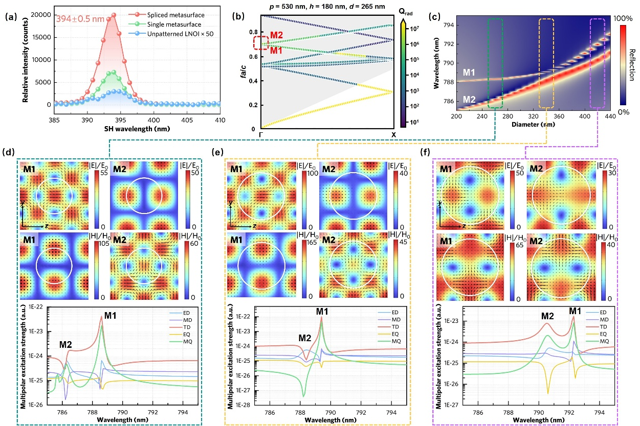 图二、铌酸锂超表面的非线性紫外谐波产生增强及其共振模式分析。