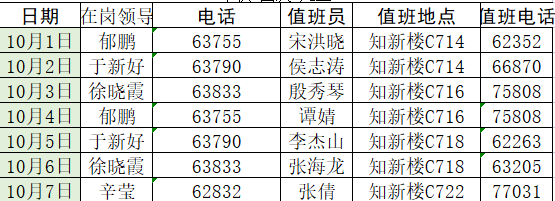 国庆节放假及值班表安排: