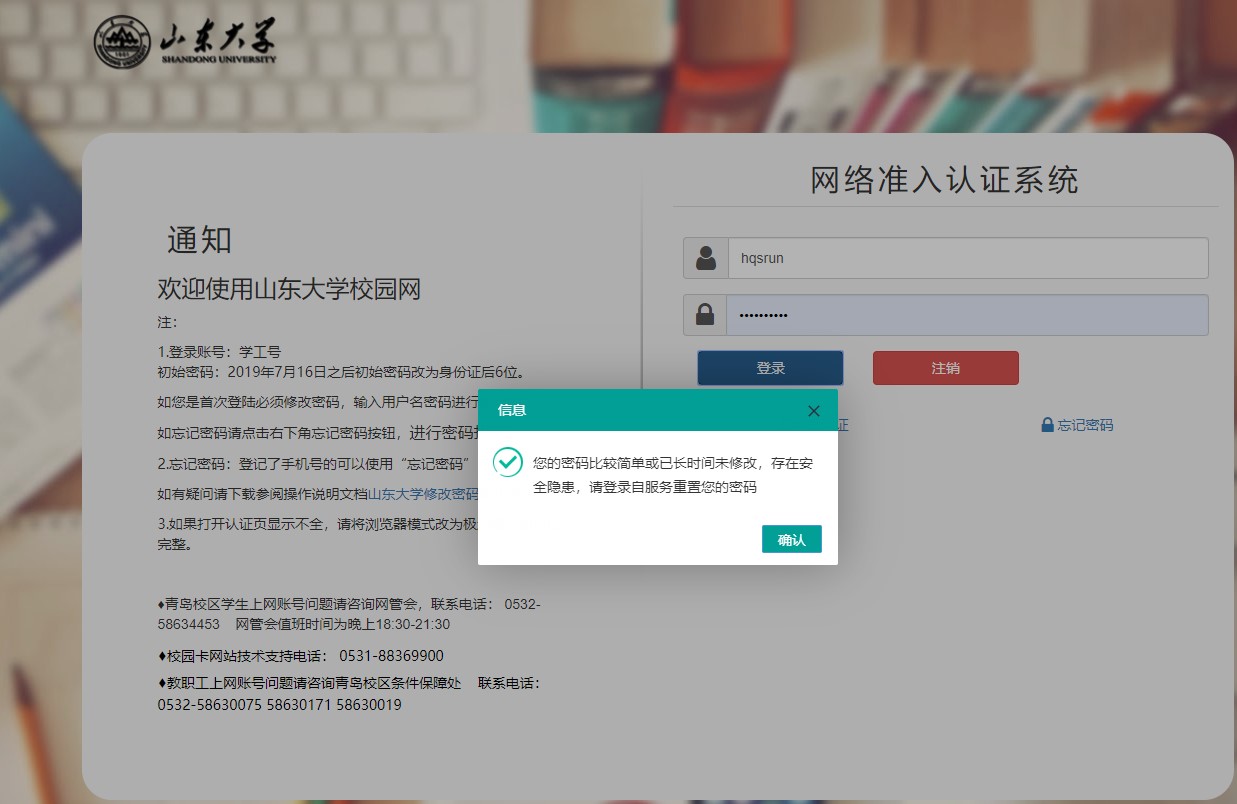 6、为网络安全,初始密码未更改者,首次登陆必须修改密码。