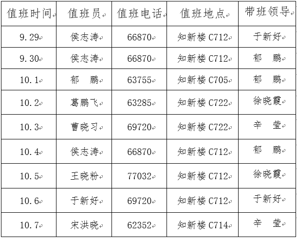 三、做好应急值守。放假期间,各办公室和实验室要切实做好应急值守工作。党政主要负责人和办公室负责人保持通讯畅通;值班人员严格按照值班时间确保在岗在位,及时掌握安全动态,认真执行重要信息报告制度。