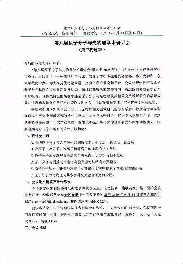第八届原子分子与光物理学术研讨会(第三轮通知)
