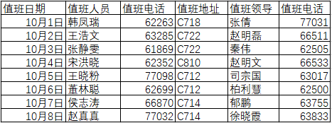 严格落实值班值守工作办法,学院安排处级干部和工作人员各1人白天在岗值班,夜间听班。值班表如下:
