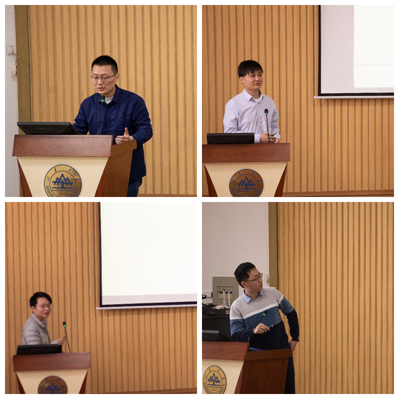 颁奖仪式结束后,学术讲座正式开始,张成龙教授首先作报告。张教授主要从事拓扑量子材料中的低温输运实验研究,他向大家介绍了能带拓扑的基本概念及这一领域的研究进展和应用前景。随后,李明星教授给大家带来了基于高通量实验和数据驱动的非晶合金研究方面的内容。李教授主要从事非晶、高熵合金等多组元合金的高通量实验和数据驱动的交叉研究,以此探索材料的化学组分、微观结构和物理性能的关系。紧接着,张然介绍了中科院物理所发展历史及概况,同时作为山东大学开云online(中国)2020届本科毕业生和物理所2020级直博生,他分享了个人在大学以及研究生期间的学习科研经历。最后,同为山东大学开云online(中国)校友的曹乘榕教授介绍了长三角物理研究中心及主要工作内容,并与同学们进行了分享交流。