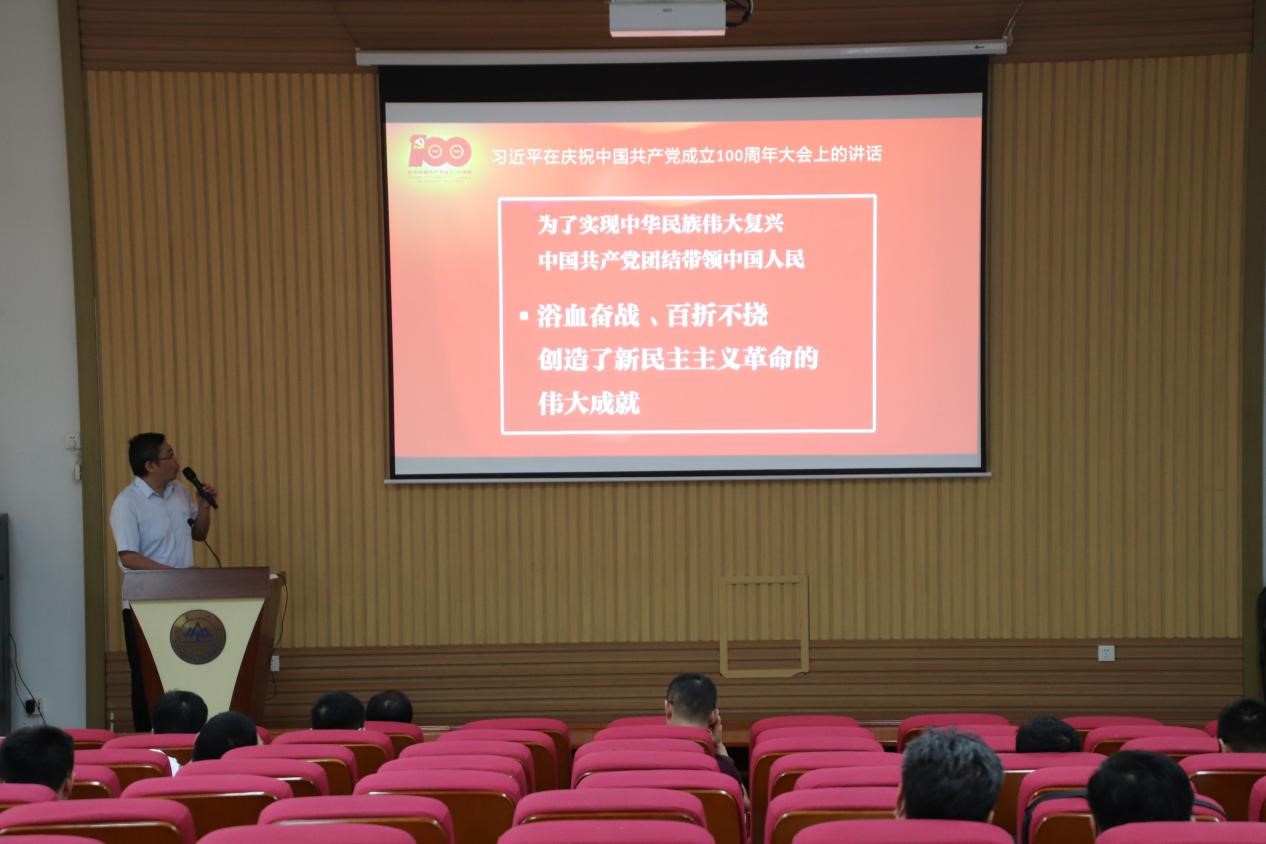郁鹏领学解读了习近平总书记在庆祝中国共产党成立100周年大会上的重要讲话。要求开云online(中国)全体师生要认真学习领会习近平总书记重要讲话精神,深刻把握其精神实质和丰富内涵,切实在学懂弄通做实上下功夫,做到知行合一、学用一致;要牢记初心使命,弘扬光荣传统,始终坚持为党育人、为国育才,紧紧围绕立德树人根本任务,教育引导广大青年学子以实现中华民族伟大复兴为己任,努力培养德智体美劳全面发展的社会主义建设者和接班人;要勇担新时代责任使命,把学习贯彻重要讲话精神激发出的热情和动力,转化为谋划工作、推动落实的具体成效,做推动学院改革发展的排头兵、铺路石、爆破手,为“强院兴校”“强校兴国”努力做贡献。