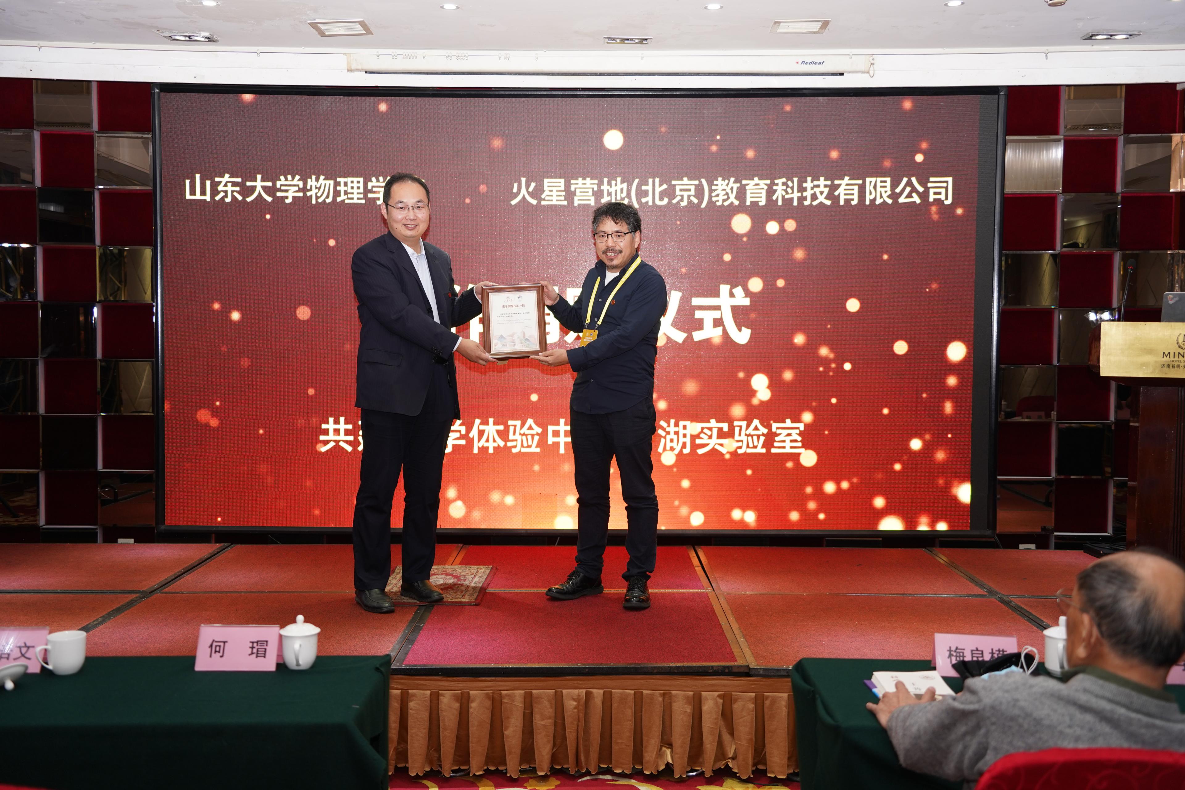 学院服务社会、广联校友,共谋发展。院长陈峰主持合作捐赠仪式。火星营地(北京)教育科技有限公司投入建设和捐赠资金120万元,共建开云online(中国)科学体验中心冷湖实验室;山东慧特教育科技有限公司捐赠资金60万元,共建开云online(中国)科学体验中心慧特强基创新科普教育基地。