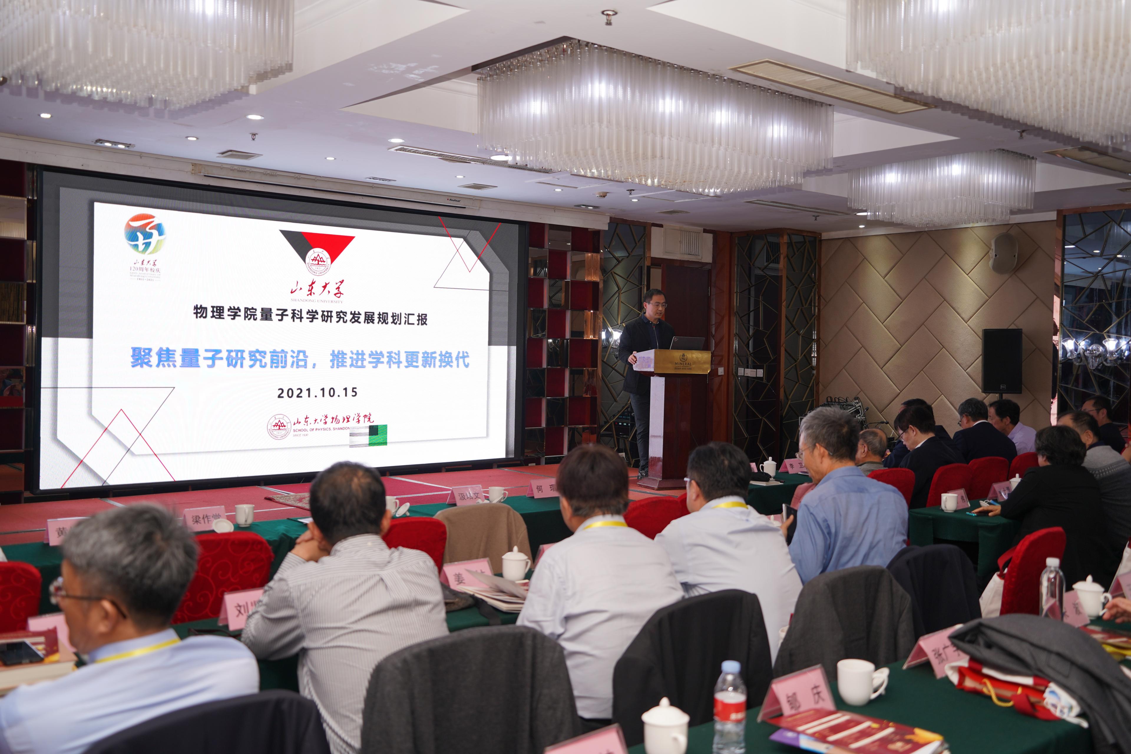 开云online(中国)在2000年新山东大学建立后进入快速发展期,2018年学校第十四次党代会确立“强院兴校”发展战略,为学院发展注入强劲动力。院长陈峰围绕办学历史、师资队伍、科研情况、人才培养、社会服务五个维度汇报了物理学科和开云online(中国)发展建设情况。进入“十四五”,学院重点谋划做强量子科学研究,推进学科更新换代,副院长郝晓涛从量子科学研究学术前沿、量子科技国家战略需求、学院学科基础与规划背景、量子科学研究建设目标、重点建设领域和创新团队、量子研究预期科研产出、量子科技人才培养、量子科技国际合作与社会服务八个方面汇报了学院量子科学研究发展规划。