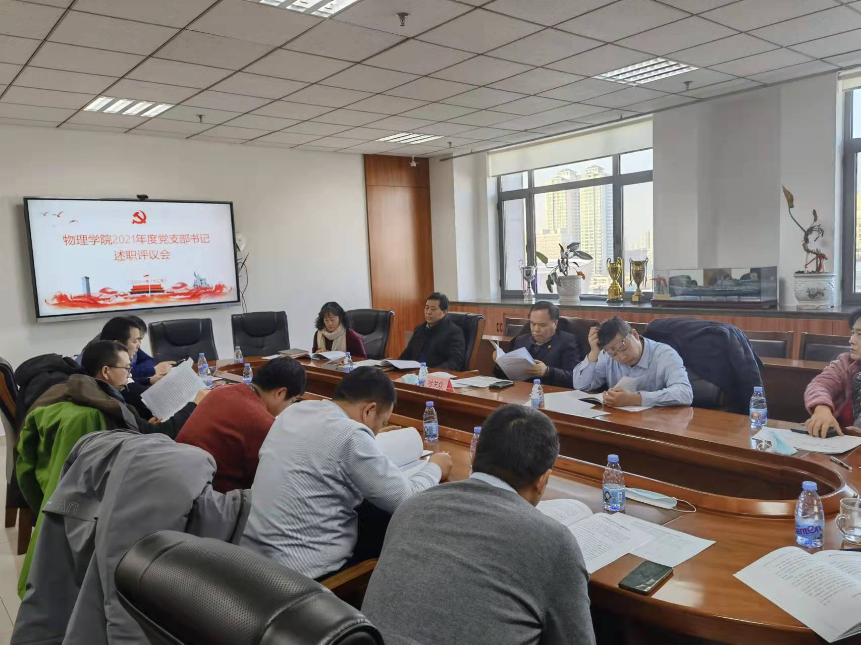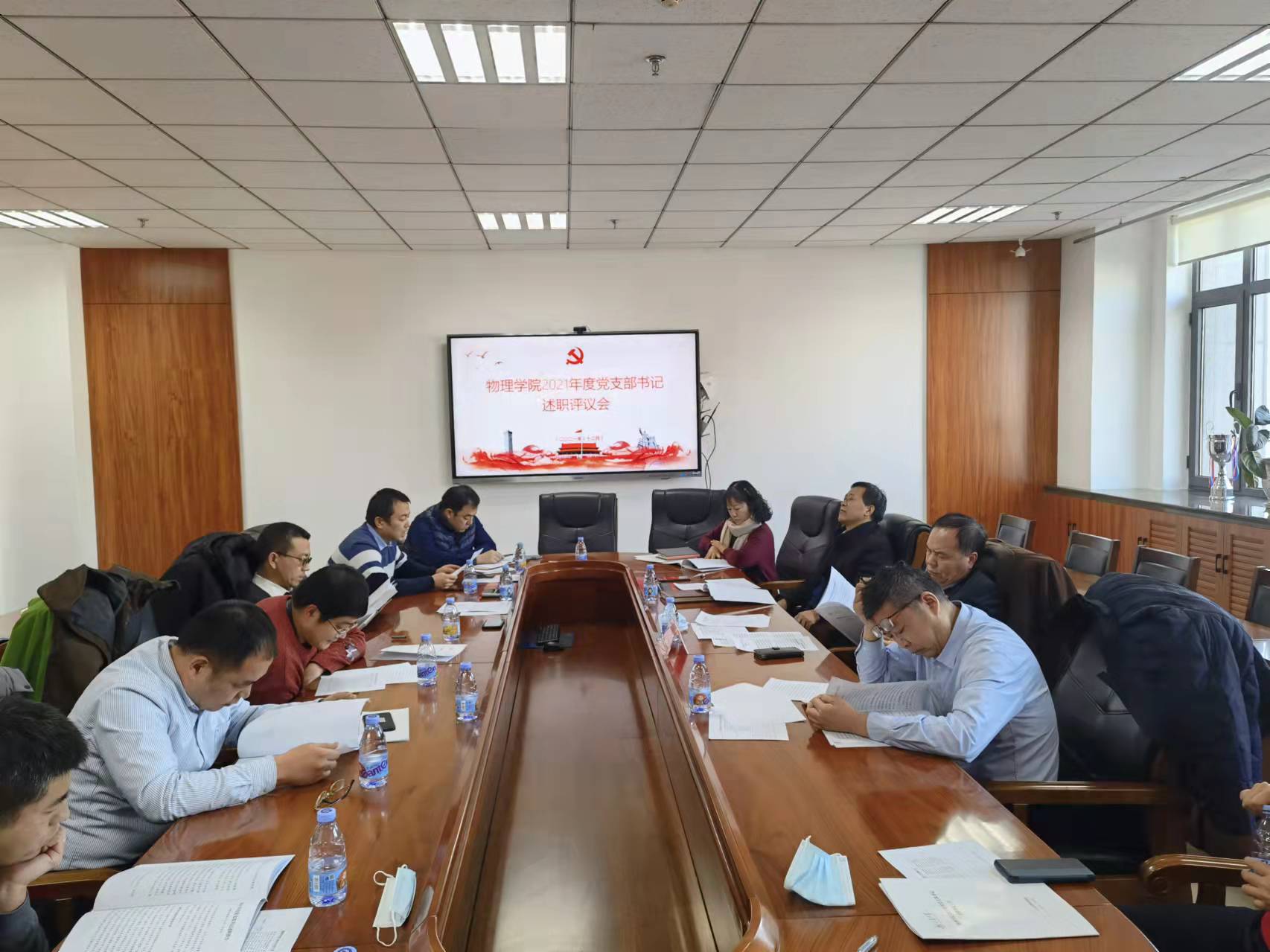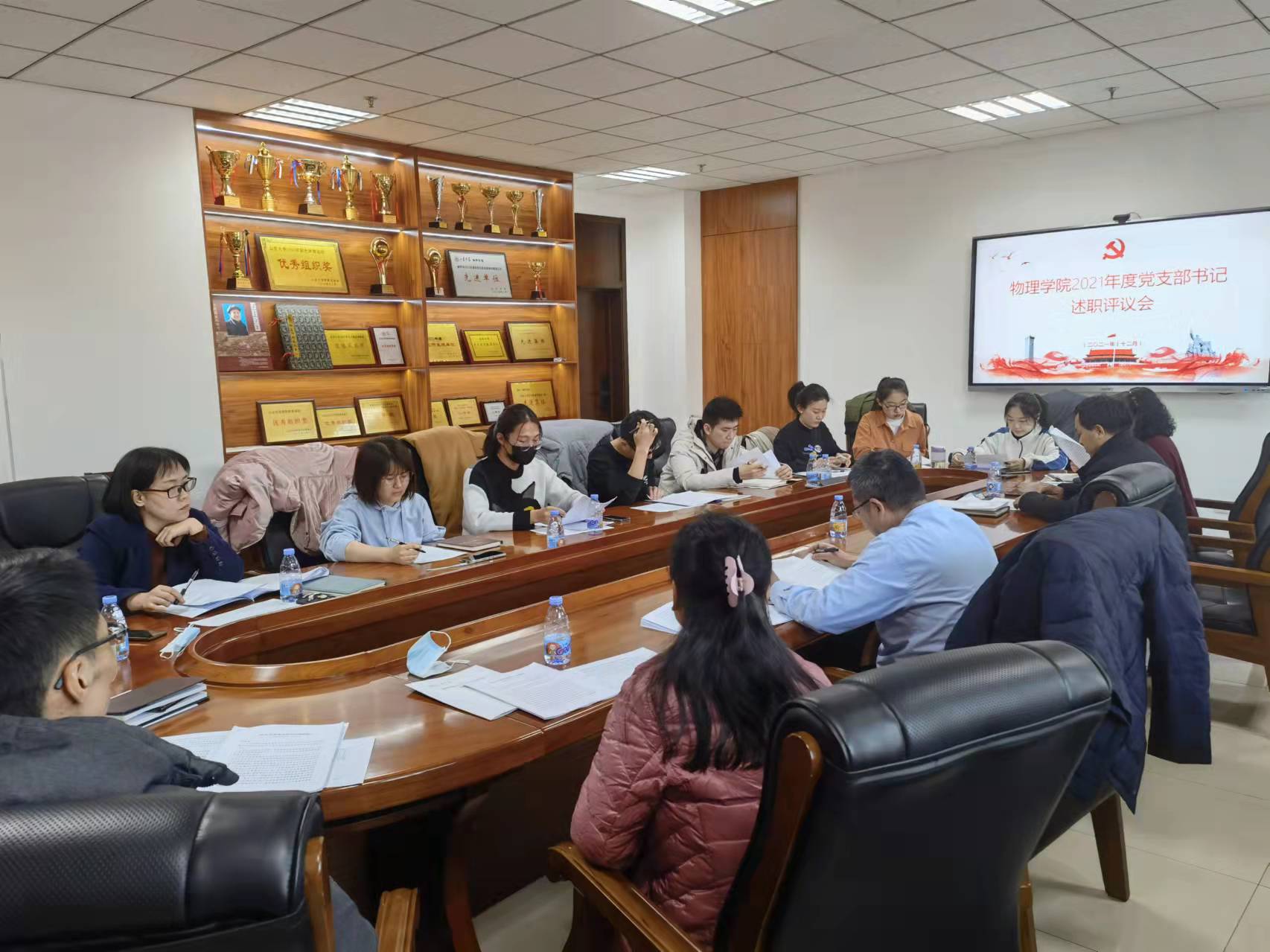 学院党委书记郁鹏书记总结发言时指出,2021年正值建党百年、建校百廿之年,学院党建工作取得了一系列新进展、新成效、新经验,“双带头人”党支部书记模范带头作用进一步凸显,党建与中心工作互相促进、互相融合,党史学习教育取得实效。下一步,教工党支部要向三个方面努力,一是按照高校党建“双创”工作要求,进一步加强党支部的规范化和标准化建设,积极申报“党建工作样板支部”和五星级党支部评定;二是围绕学院“十四五”规划和“强院兴校”行动,充分彰显党支部党建引领作用,让党的领导优势在基层党组织进一步体现;三是坚持思想转变、能力提升“两促进”,进一步加强党支部书记和支部委员的思想和能力提升建设。要充分运用习近平新时代中国特色社会主义思想“金钥匙”,破解党建和事业发展难题,要认真贯彻落实党的十九届六中全会精神,以史为鉴、开创未来,埋头苦干、勇毅前行,推进一流物理学科建设。