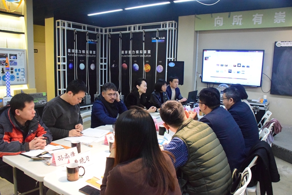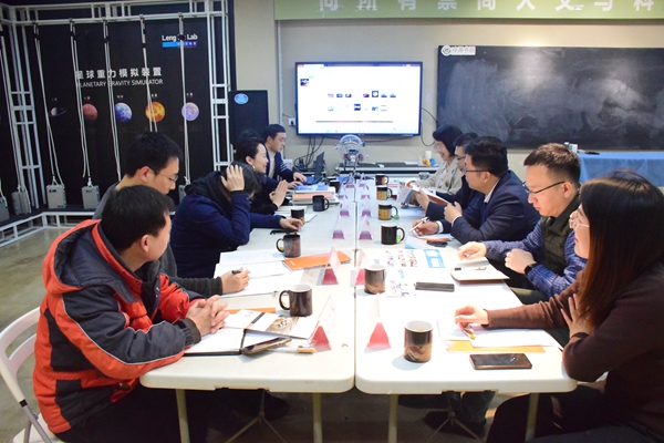 会上,苏文斌介绍了开云online(中国)与火星营地(北京)教育科技有限公司前期战略合作情况,近几年,双方在共建开云online(中国)科学体验中心冷湖实验室、合作开发中小学生科学普及课程及教材体系、推动“物观星移”学生科普团队进社区进校园进网络等方面均取得了一定成果。范金林就学校推动双创教育的相关工作进行了梳理,同时详细讲解了2022年度“互联网+”大学生创新创业大赛的相关要求及备赛事宜。高峻岭就公司科学普及课程体系设计推广情况和冷湖实验室、火星营地等的开发建设情况进行了介绍。侯志鹏汇报了“物观星移”学生科普团队自2018年成立以来开展中小学、社区天文科普的活动情况。随后,参会人员就“互联网+” 大学生创新创业大赛项目打磨、创新创业竞赛立项资助、“社区天文馆”推广、“创意工场”建设等事项进行了探讨交流。姜炳刚指出,以学生创新创业立项和竞赛为抓手深化推进校企、院企协同育人工作大有可为,下一步将探索校院协同将相关项目、创意、规划落实落地,不断提升育人成效。郁鹏在总结中表示,学院将继续挖掘“一校三地”物理学科资源优势,深化校企协同育人、做好科学知识普及,着力发挥物理学科基础性的优势,助力学生综合素质和社会科学素养的全面提升。