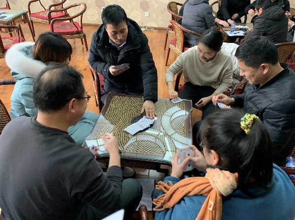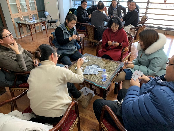 本次活动为手持牌比赛,每支参赛队伍自由组队,包含3名上场队员。工会委员负责成绩记录、秩序维护、机动替补、后勤服务等工作。比赛采取循环积分模式,根据积分总和进行排序。8支固定队伍和4支随机队伍经过七轮交叉比赛最终由第8队摘得本次比赛的桂冠。