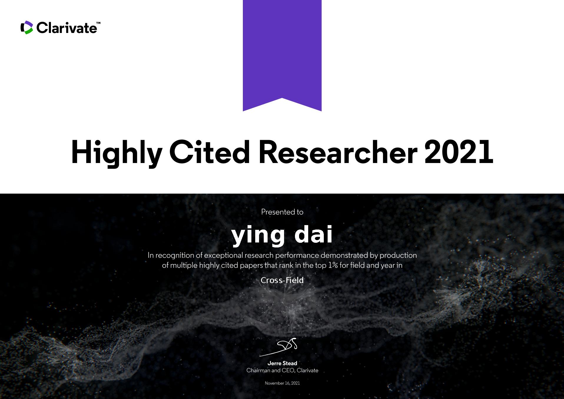 2021年11月16日,科睿唯安(ClarivateAnalytics)正式发布了2021年全球“高被引科学家”榜单,入榜科学家均发表了多篇高被引论文,其被引频次位于同学科前1%,彰显了在同行之中的重要学术影响力。