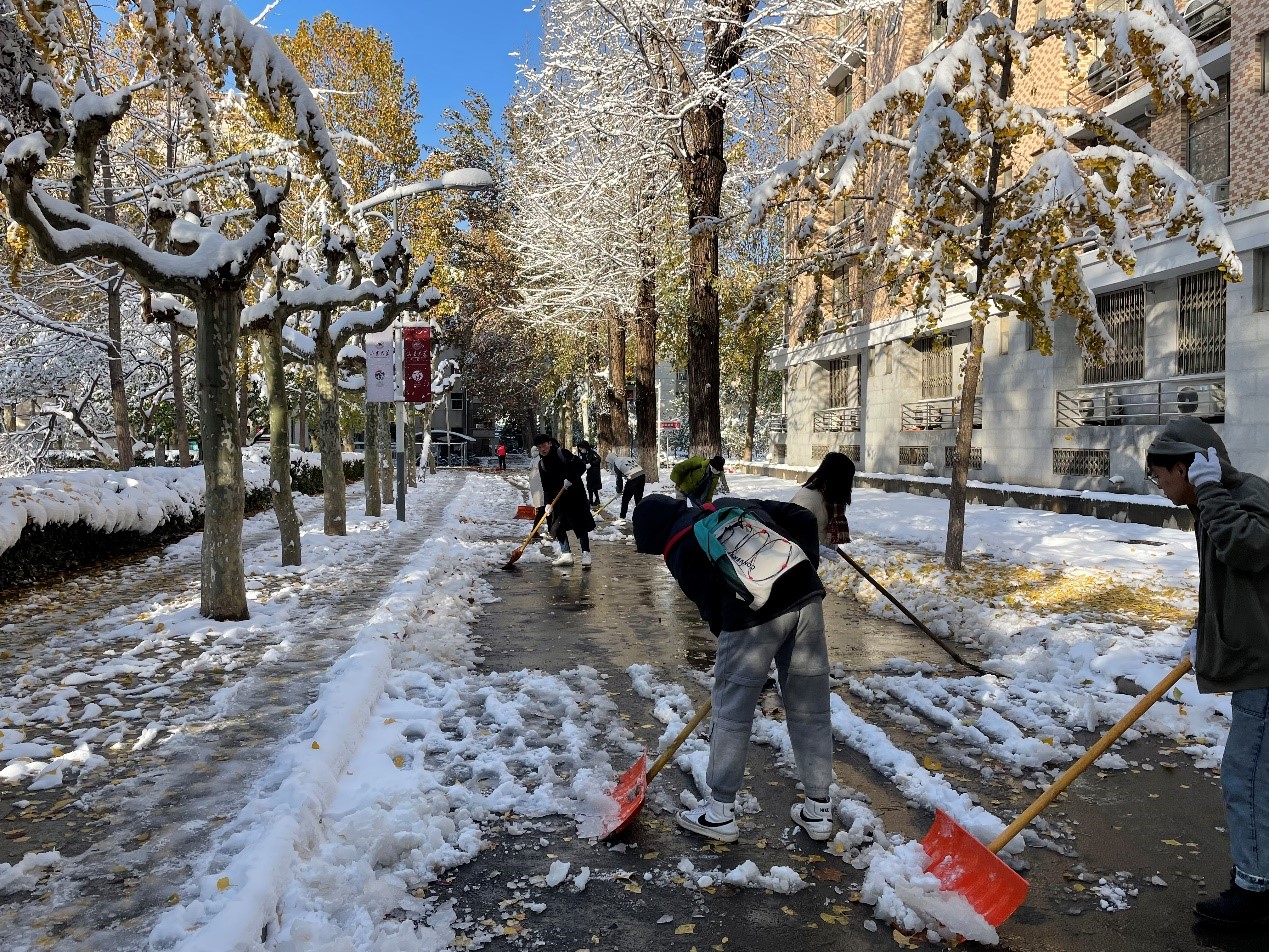 为扎实推进党史学习教育走深走实,开云online(中国)组织开展形式多样、内容丰富的“我为群众办实事”实践活动,多措并举为师生办实事暖心事,使党史学习教育成果真正惠及群众。11月7日,济南突降暴雪,给在校师生的学习生活带来了不便,存在诸多安全隐患。开云online(中国)发出“扫雪送温暖,除冰我先行”的倡议,本、研各党团支部、各班级、青年志愿者纷纷报名响应,积极参与到清雪除冰工作当中。在7日、8日两天时间里,大家做好保暖防疫准备,不惧严寒,奋力苦干,使用各样工具清扫积雪,为老师同学出行尽一份力。