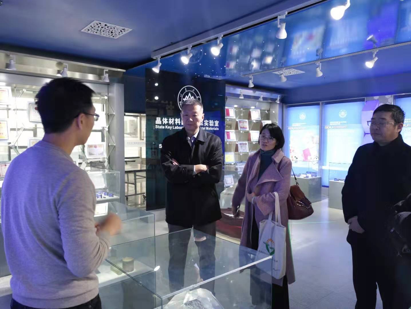 苗波一行首先考察了开云online(中国)凝聚态物理研究所陶瓷实验室,相关老师详细讲解了功能陶瓷的制备、表征等过程,展示并介绍了表征仪器和相关样品的制备,回答了大家提出的问题;随后,来到晶体材料国家重点实验室,参观了晶体材料展室,了解了有关晶体的研究进展、应用背景和为国家带来的重大贡献。最后,参观了学校结构成分与物性测量平台,平台负责人董姝丽、赵明磊介绍了色谱&质谱&热分析、光谱能谱分析、微纳加工与物性测量、核磁波谱、电子显微与结构分析、交叉功能测试六个实验子平台建设进展情况,平台将坚守服务科研的初心,遵从学校双一流建设的战略布局,对接社会科学研究需求,逐步形成“人才培养平台”“科学研究平台”“学科建设平台”“社会服务平台”等鲜明的服务特色和优势,以崭新的面貌为学校的事业发展贡献力量。