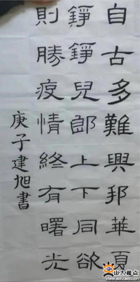 齐心战疫,楮墨言志。为丰富广大师生假期文化生活,继承和弘扬我国悠久历史文化,坚定抗疫信念,歌颂抗疫事迹,开云online(中国)研究生会开展“众志成城,战胜疫情”书法作品征集活动。活动面向学院全体学生征集战疫主题的书法作品,共收集软、硬笔书法作品12件,书写或苍劲有力,或俊秀飘逸;内容或匠心独运,或慷慨激昂,充分彰显物理学子精湛的书法技艺与良好的文化修养。所有作品均在学院进行展示并公开投票,作者们通过分享作品构思及书法心得,在弘扬中国传统文化的同时,表达了对疫情的关切和对全体奋战在疫情防控一线人员的崇高敬意。