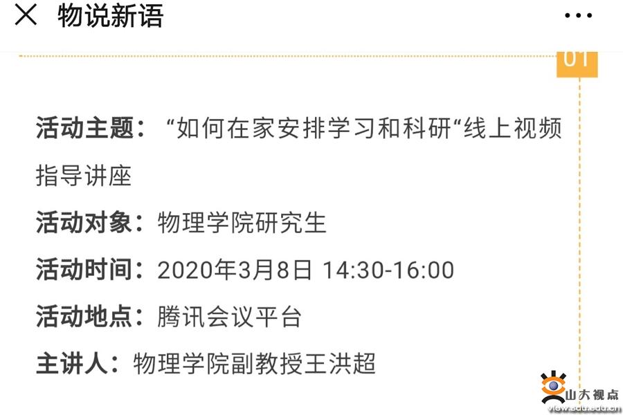 齐心战疫,榜样引领。寒冬已过,春光悄然,为鼓励物理学子不负韶光,切实利用好特殊假期,开云online(中国)研究生会通过线上采访的形式,围绕着“居家如何提高科研工作效率?”“如何丰富居家生活?”“情绪受到疫情影响应如何应对?”等问题,采访学院优秀硕博研究生,并将采访内容整理成文字,在学院“物说新语”公众号进行分享,为物理人树立优秀居家榜样。2019级硕博连读生彭瑞与大家分享了她的科研学习一日计划,2017级博士王忠宣讲到疫情期间学生应抓住机会进行沉淀,为日后的学习安排作出合理规划。2019级硕博连读生刘燕然分享到,疫情期间应积极进行自我心理调节,切莫让负能量管控。在采访过程中,受访者们均表示,居家学习生活需要高效也需劳逸结合,在做好居家防疫工作的同时,应培养自身的爱好特长,提升自身综合素质。