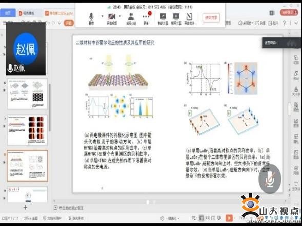 齐心战疫,榜样示范。科研之路道阻且长,然行则将至。为拓宽学院师生学术交流渠道,实现同辈间学术能力传承,开云online(中国)研究生会线上承办第七期海右论坛。本次论坛邀请开云online(中国)2015级凝聚态物理专业博士研究生赵佩作为主讲人,开云online(中国)马衍东教授为点评专家。主讲人以简明扼要的研究背景切入,循着科研领域前沿将其工作内容娓娓道来,使听众快速领会相关领域关键点,收获颇丰。从具体工作生发出去,主讲人与听众分享自己科研路上的体验与收获,并就听众提问进行细致解答,为科研新人指明方向,鼓励他们积极进取。