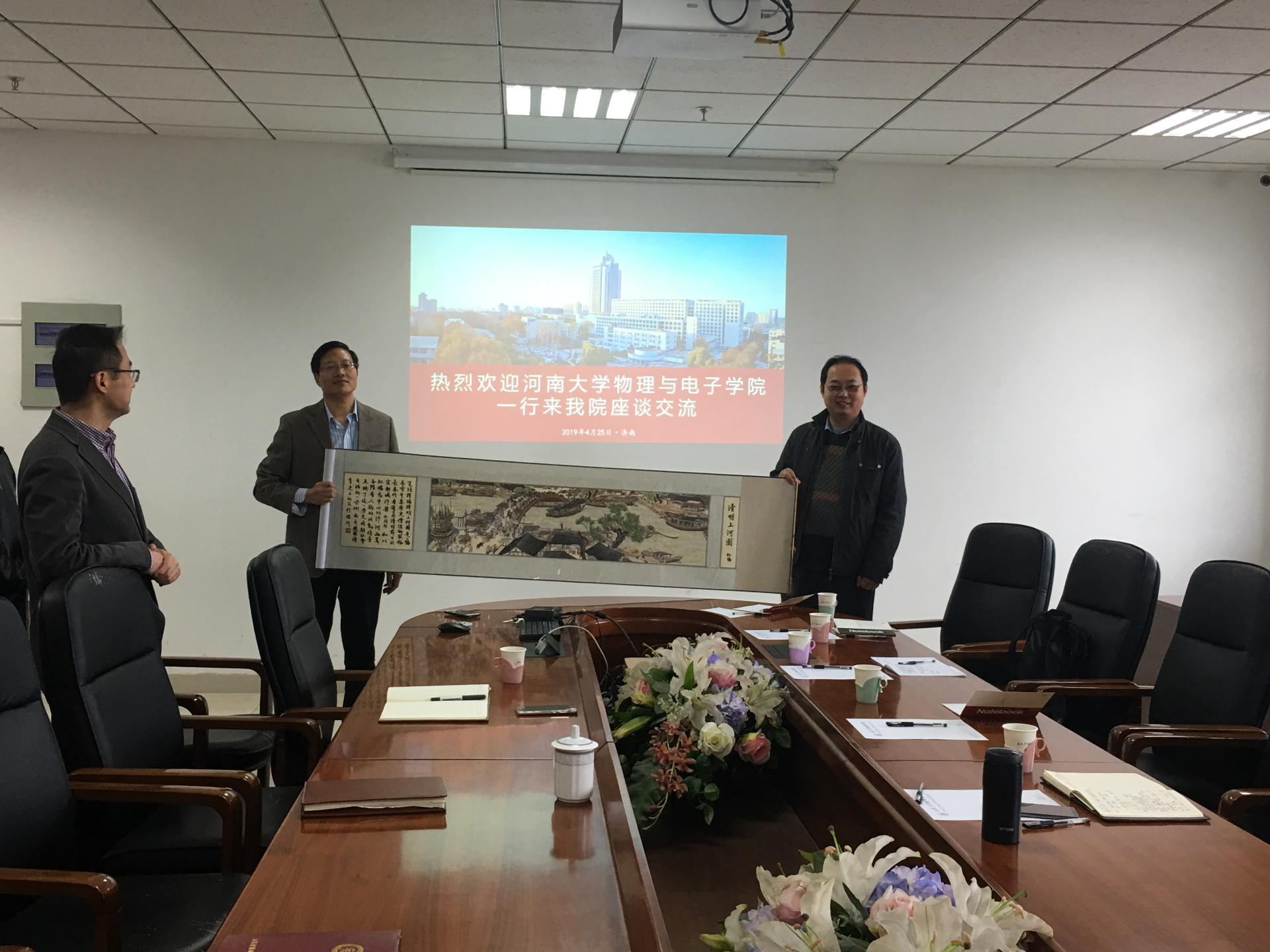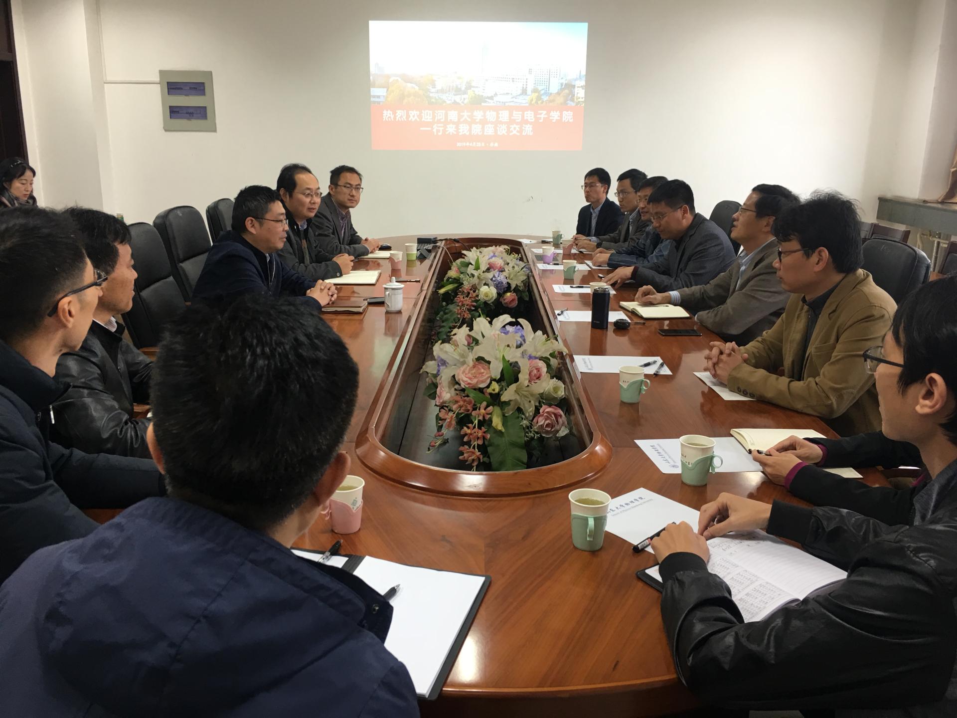 4月25日,河南大学物理与电子学院院长王渊旭一行8人,来我院进行学习交流。会议由学院院长陈峰主持,学院党政领导班子成员和部分教师参加座谈会。