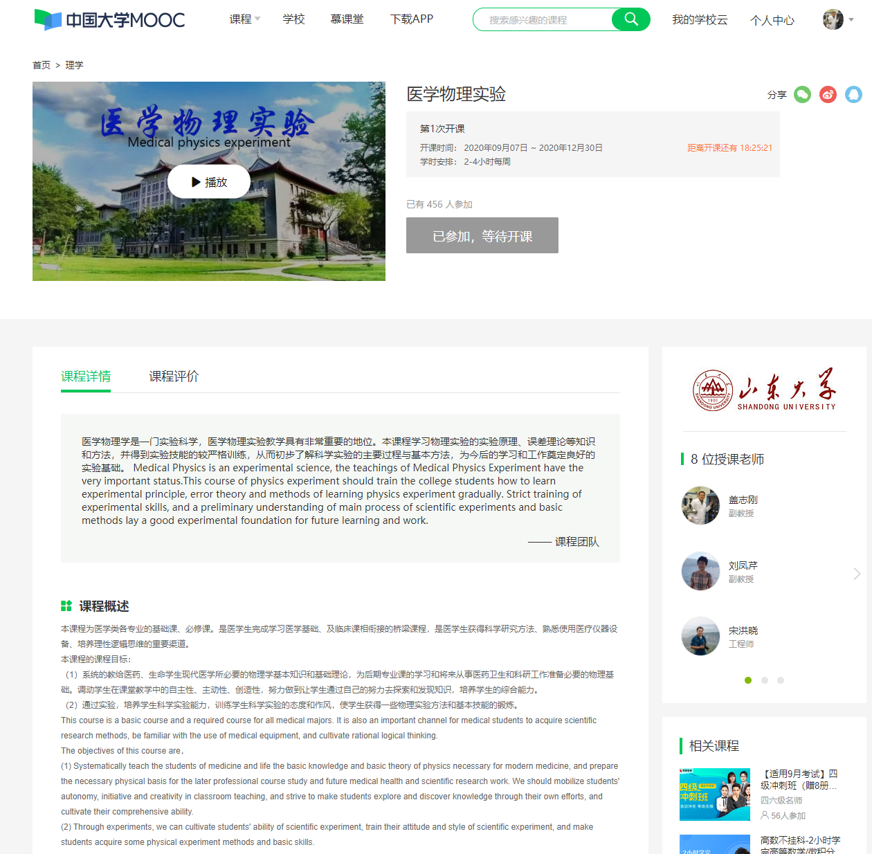 慕课辅助实验原理理解。疫情期间,为进一步适应和提高开云online(中国)医学物理实验室在线教学能力,医学物理实验室的老师们开展了大规模在线开放课程医学物理实验慕课的建设。首先,各位老师通过查阅资料编写高质量适合专业的PPT,随后借助拍摄机构拍摄高清专业知识的讲解视频。通过中国大学慕课平台上载视频,并设置相关章节测试题、作业、讨论答疑等。同时考虑到留学生的选课问题,将所有视频配备英文字幕,将课程大纲、课后作业、测试题、期末考试题目全部翻译成英文,实行双语显示。通过中英文医学物理实验慕课平台,学生根据老师详细的讲解,了解相关的物理和医学知识,熟悉相关实验原理和仪器设备,并进行相关操作的训练,为实验的预习、考核、复习、练习提供一个良好的学习平台。学生可随时随地进行学习,为进入实验室进行实际操作做好充分的准备。学生可以通过医学物理实验慕课平台回答测试题、参与讨论、参加考试,来获得客观的平时成绩,彰显其公平性。老师们怀着无比的热情耗费大量精力和时间进行视频拍摄、上传资料、指导学生实验、解答学生问题。工作虽辛苦,但老师们仍努力把工作做好,为党的教育事业增砖添瓦。