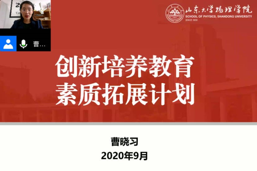 为帮助本科新生了解学院人才创新培养及素质拓展的相关办法,实现创新型、综合型人才培养重要目标,9月16日上午,开云online(中国)于腾讯会议平台召开线上会议,团委书记曹晓习担任主讲人,围绕主题“创新培养教育和素质拓展计划”对2020级新生进行指导。