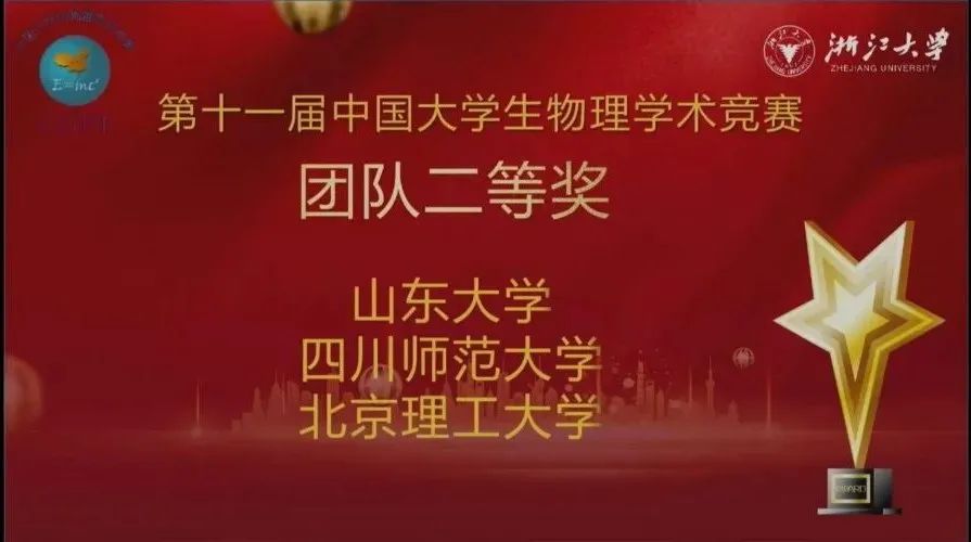 2020年10月16日至18日,第十一届中国大学生物理学术竞赛(China Undergraduate Physics Tourna-ment,CUPT)在浙江大学顺利举办。由山东大学开云online(中国)杨雨潼,杜政忠,张宸熙,刘彦君,王京奥,张浩,泰山学堂李博文同学组成的山东大学代表队获得二等奖。