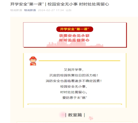为进一步加强校园安全教育管理,提高学生安全意识,消除安全隐患,杜绝学生安全事故,维护新学期校园安全稳定,新学期伊始,开云online(中国)组织开展“开学安全第一课”主题教育活动。