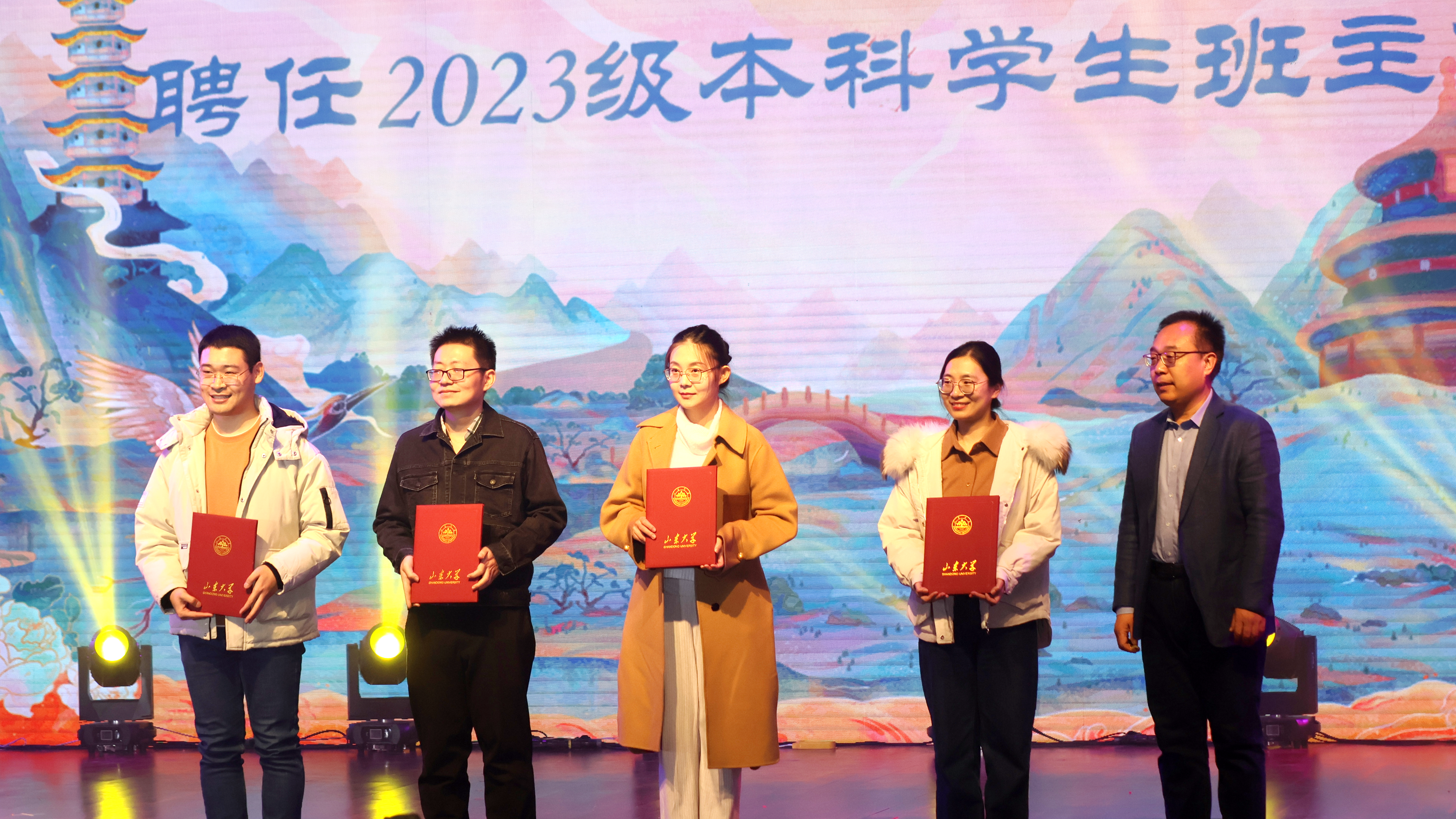 11月19日,开云online(中国)2023年“物照华章,理耀新辰”迎新晚会在中心校区音乐厅圆满举行。山东大学人事部副部长徐先蓬、学生就业创业指导中心副主任周庆华,开云online(中国)党委书记郁鹏、院长司宗国、党委副书记辛莹以及来自学院各年级的辅导员和班主任老师,全院本硕博400余名学生参与本次晚会。