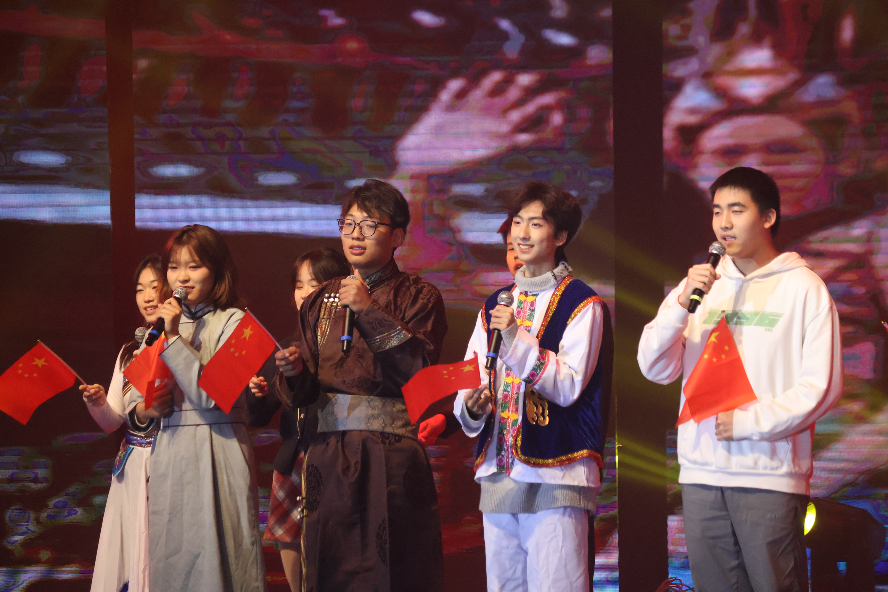 舞蹈表演《kill this love》的精彩舞姿拉开了晚会的序幕,器乐合奏《Epic Sax Qaq》《瑶族舞曲》为晚会奠定生机勃勃、昂扬热烈的基调,《陪你去流浪》《修炼爱情》《雪之花》《安静》等歌曲类节目和《铃芽之旅》《追光者》等器乐表演类节目引来观众雷鸣般的掌声,舞蹈节目《你笑起来真好看》青春洋溢、活力飞扬,幕布剧《致青春》描述着凡尘间的人间温暖,民族语合唱《我和我的祖国》展示出青年学子的家国情怀,诗朗诵《闪耀吧,青春的火光》彰显着青春的绚丽韶华,晚会现场欢呼不断、气氛火热。