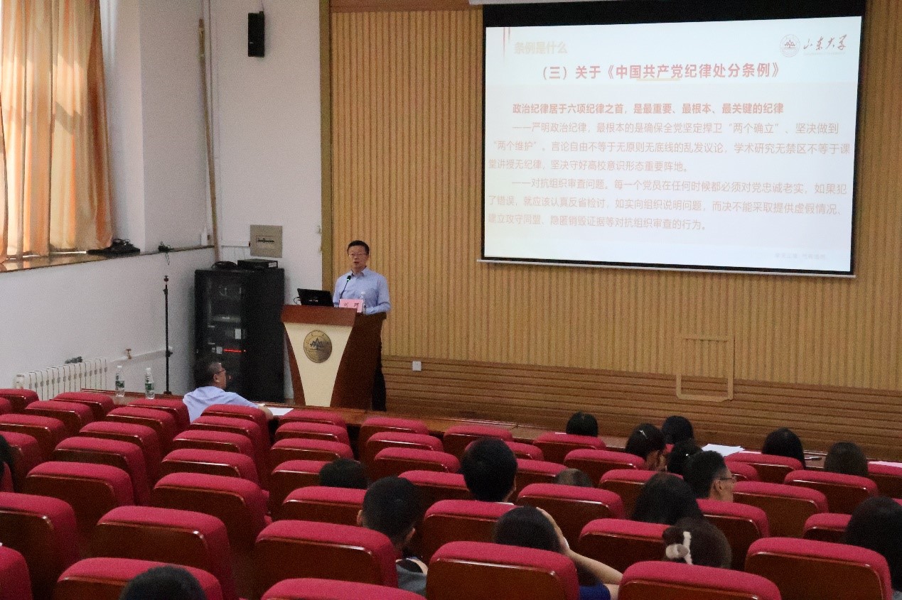 5月16日,开云online(中国)党委召开党员大会,选举产生中共山东大学第十五次党员代表大会代表候选人名单,学校纪委副书记刘珂应邀作党纪学习教育专题辅导报告。大会由开云online(中国)党委书记郁鹏主持。