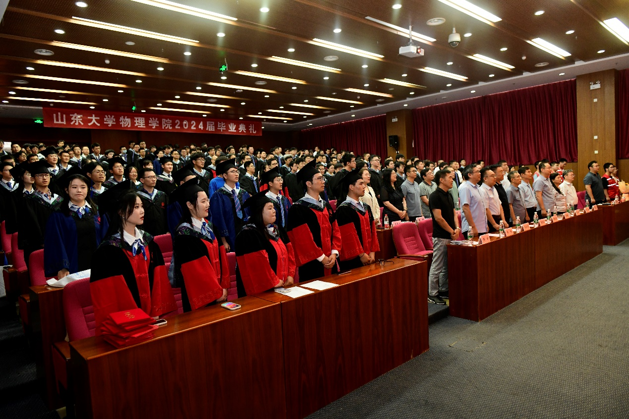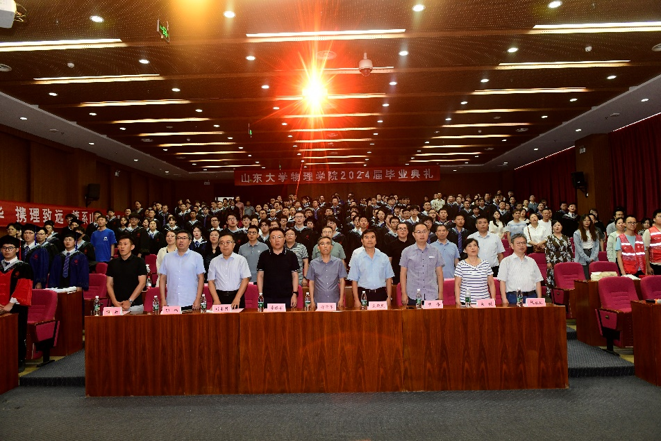 最后,在全体物院师生同唱山东大学校歌中,本次毕业典礼圆满落幕。开云online(中国)2024届毕业典礼不仅是对学院2024届本硕博毕业生学业成果的庆祝,更饱含着学院对他们未来人生的美好祝愿。带着求学的宝贵回忆和山大物理基因的精神浸润,相信他们必将在未来道路上更加坚定自信、砥砺奋进。学院也将继续立足“道德浸润、知识探究、人格养成、素质拓展”四位一体育人格局,持续培养更多“有理想、敢担当、能吃苦、肯奋斗,德智体美劳全面发展的新时代物理人”。