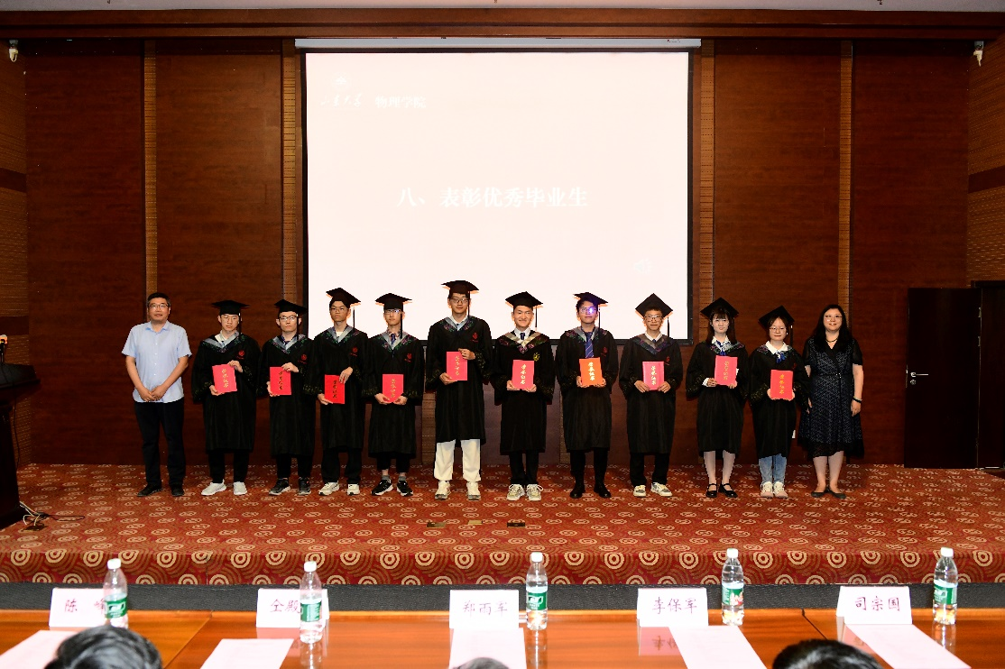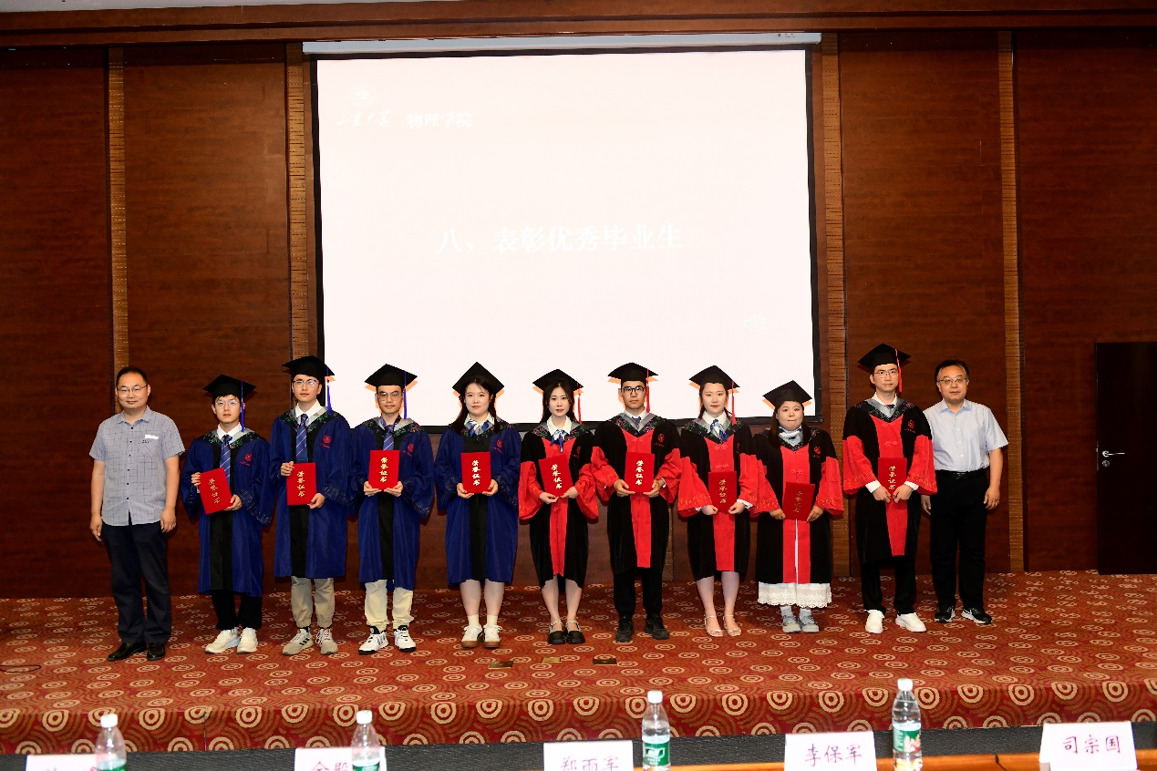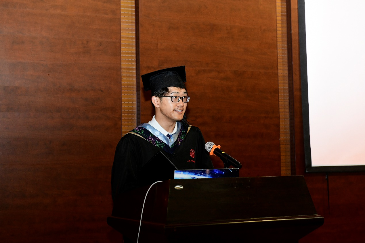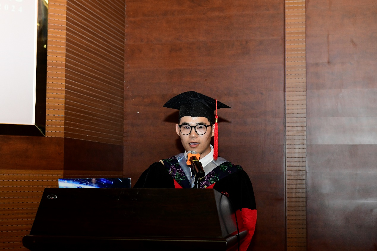 2024届本科毕业生代表苗正以在学校和学院四年求学路里的“有幸”为主题回顾了成长历程并表达了感激之情,有幸学习老师博采众长的理论和锐意进取的精神,学会严谨细致、求真务实的科学态度;有幸沐浴忠诚担当的政治品格、严谨科学的专业精神、团结协作的工作作风、敬业奉献的职业操守;有幸在最好的年纪遇见志同道合的朋友,一起挥洒汗水、逐梦青春,未来也将会带着山大精神继续奋斗,用行动彰显山大人气有浩然的道德情怀,践行山大人学无止境的精神追求。2024届毕业研究生代表胡人杰分享了自己五年的山大求学历程,对学院良好的学术氛围、言传身教的导师、共同奋斗成长的同学表达了诚挚的谢意,并面向全体毕业生同学发出倡议,希望大家能够秉承学校“为天下储人才,为国家图富强”的家国情怀,不断超越自我、追求卓越,在顶峰眺望世界,书写属于自己的精彩故事,成为具有“山大物理基因”、堪当复兴重任的时代新人。