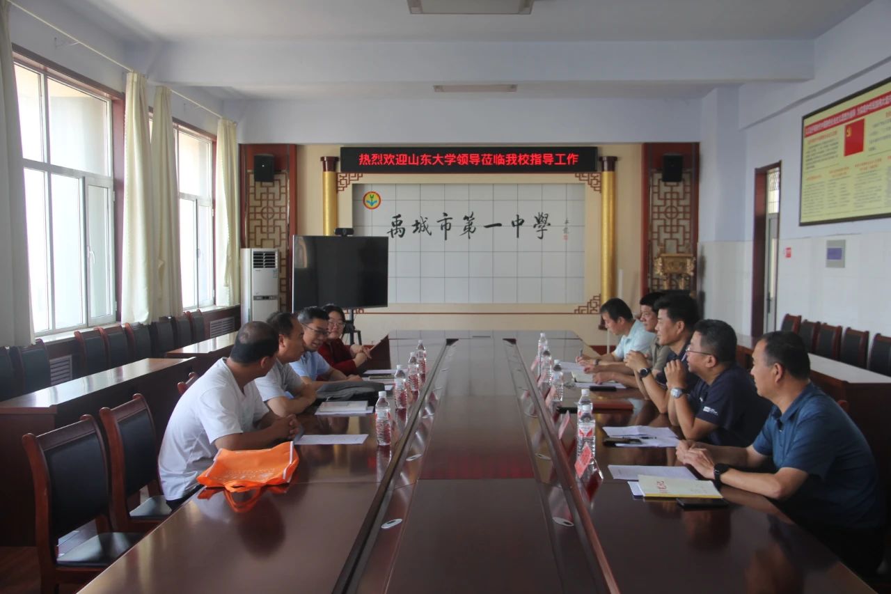 为进一步贯彻落实学校招生政策,切实提升本科生生源质量,6月26日上午,山东大学(开云online(中国))德州招生拓展组赴禹城市第一中学开展招生拓展,山东大学图书馆党委书记徐关众、开云online(中国)党委书记郁鹏、德州招生拓展组执行组长卢鹏参加考察调研,禹城市第一中学党总支书记、校长田金荣等参加座谈。