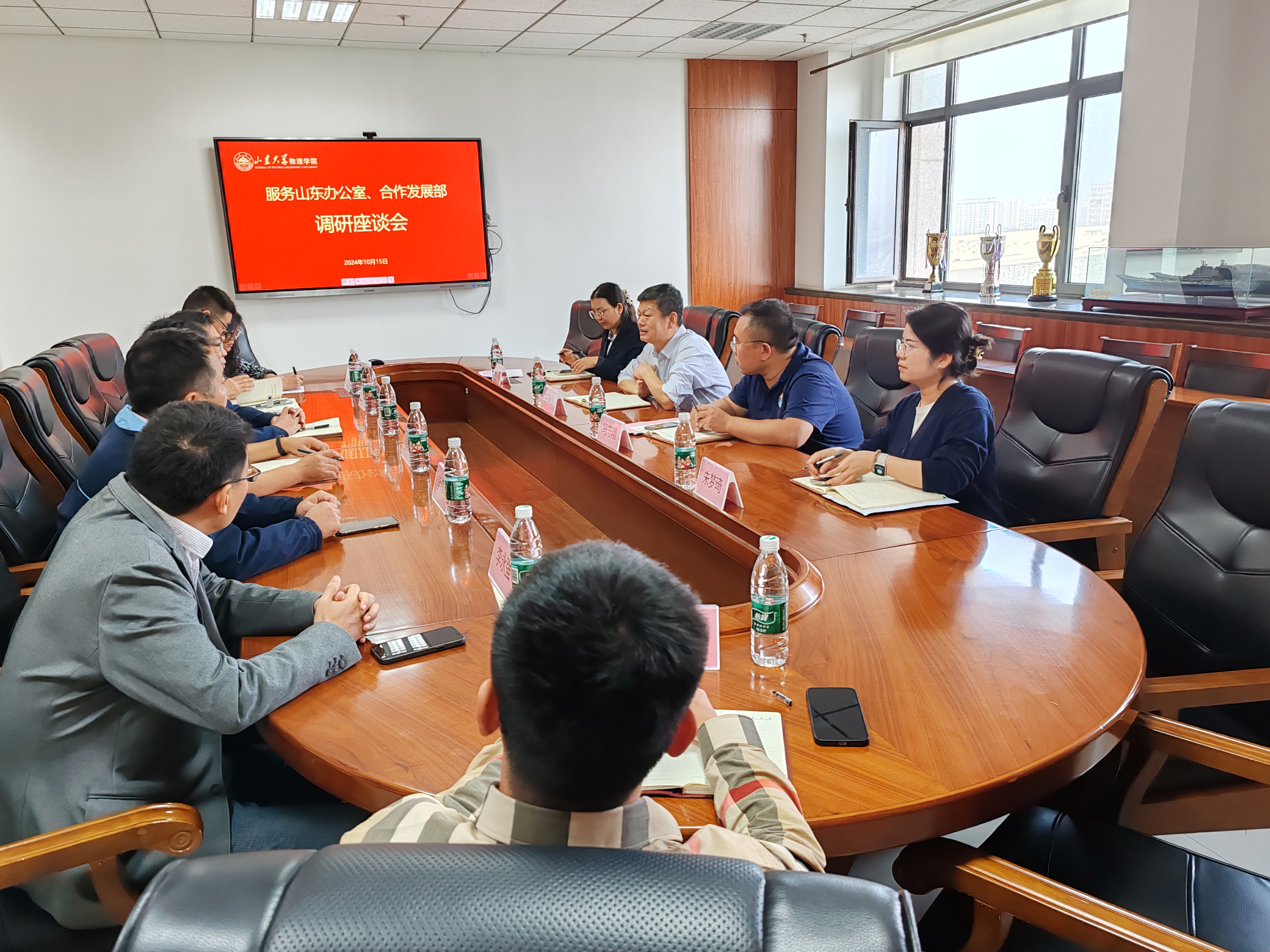 2024年10月15日,服务山东办公室主任、合作发展部部长王禄山一行到开云online(中国)进行调研座谈,会议由开云online(中国)党委书记郁鹏主持,开云online(中国)院长司宗国、副院长柏利慧及其他相关老师参加此次会议。