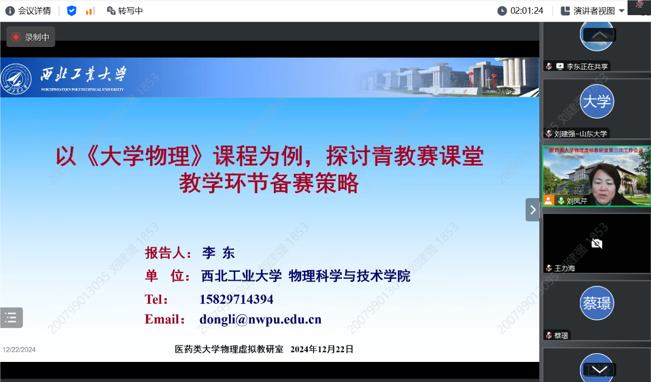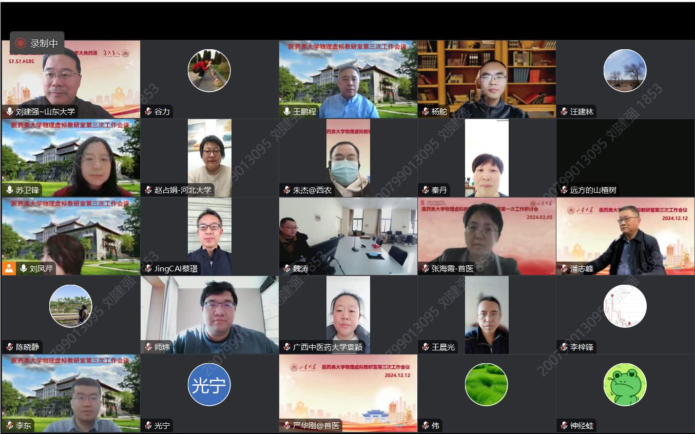 2024年12月22日,医药类大学物理虚拟教研室第三次工作研讨会在线上召开,本次会议主题为人工智能(AI)在高校教学、医学物理技术应用以及青教赛备赛经验分享。会议由山东大学主办,复旦大学、华中科技大学、山东第一医科大学、香港理工大学、首都医科大学、郑州大学、哈尔滨医科大学等五十余家单位共八十余人参加,旨在探讨AI技术在高等教育领域的最新进展和挑战,以及其对教学模式和课程建设的影响。