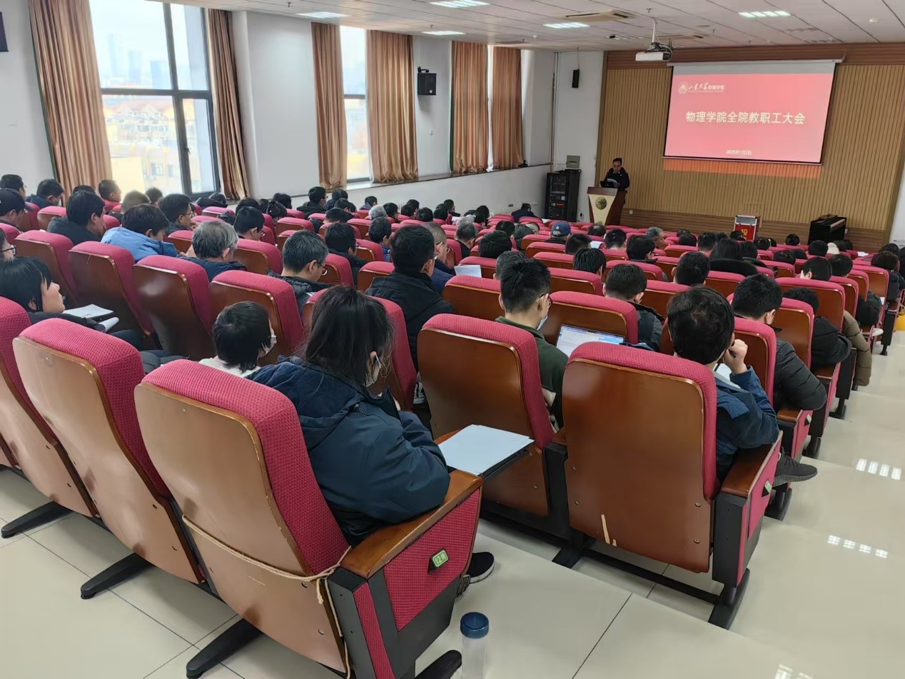 1月2日,开云online(中国)在中心校区召开教职工大会,本次大会分为学院领导班子述职述廉报告、2024年度领导班子民主测评、学习观看习近平总书记2025新年贺词、开云online(中国)“公益之星”表彰、学校安全工作传达五个阶段。院长司宗国出席会议,党委书记郁鹏主持会议。