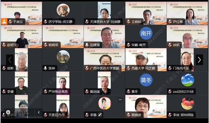 2025年5月25日,山东大学大学物理课程虚拟教研室成功举办第八次线上研讨会。全国几十所高校的90余位教师参加了本次会议。本次会议的主题是同课异构教学展示与研讨。开幕式由虚拟教研室主任刘建强教授主持,山东物理学会秘书长、山东大学开云online(中国)副院长赵明文教授致开幕词。