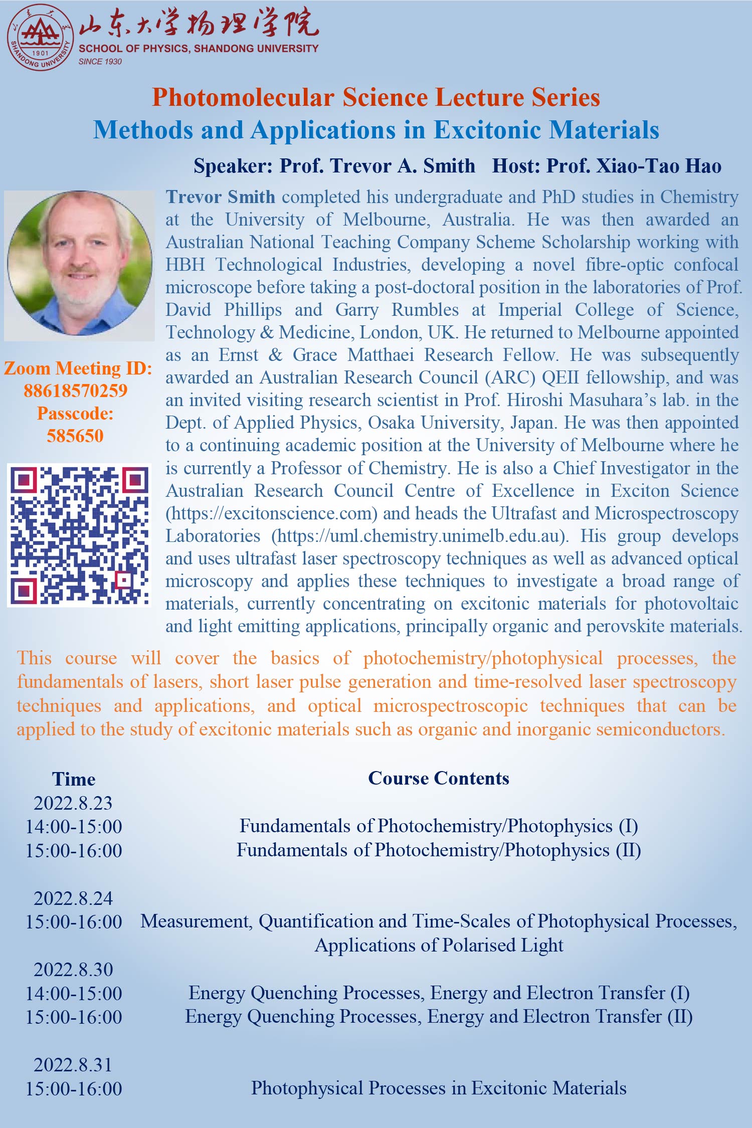 Photomolecular Science Lecture Series: Methods and Applications in Excitonic Materials