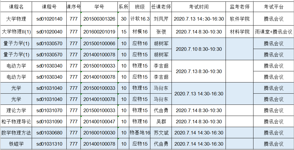 各位同学,2019-2020.3学期 开云online(中国)777课程考试安排如下: